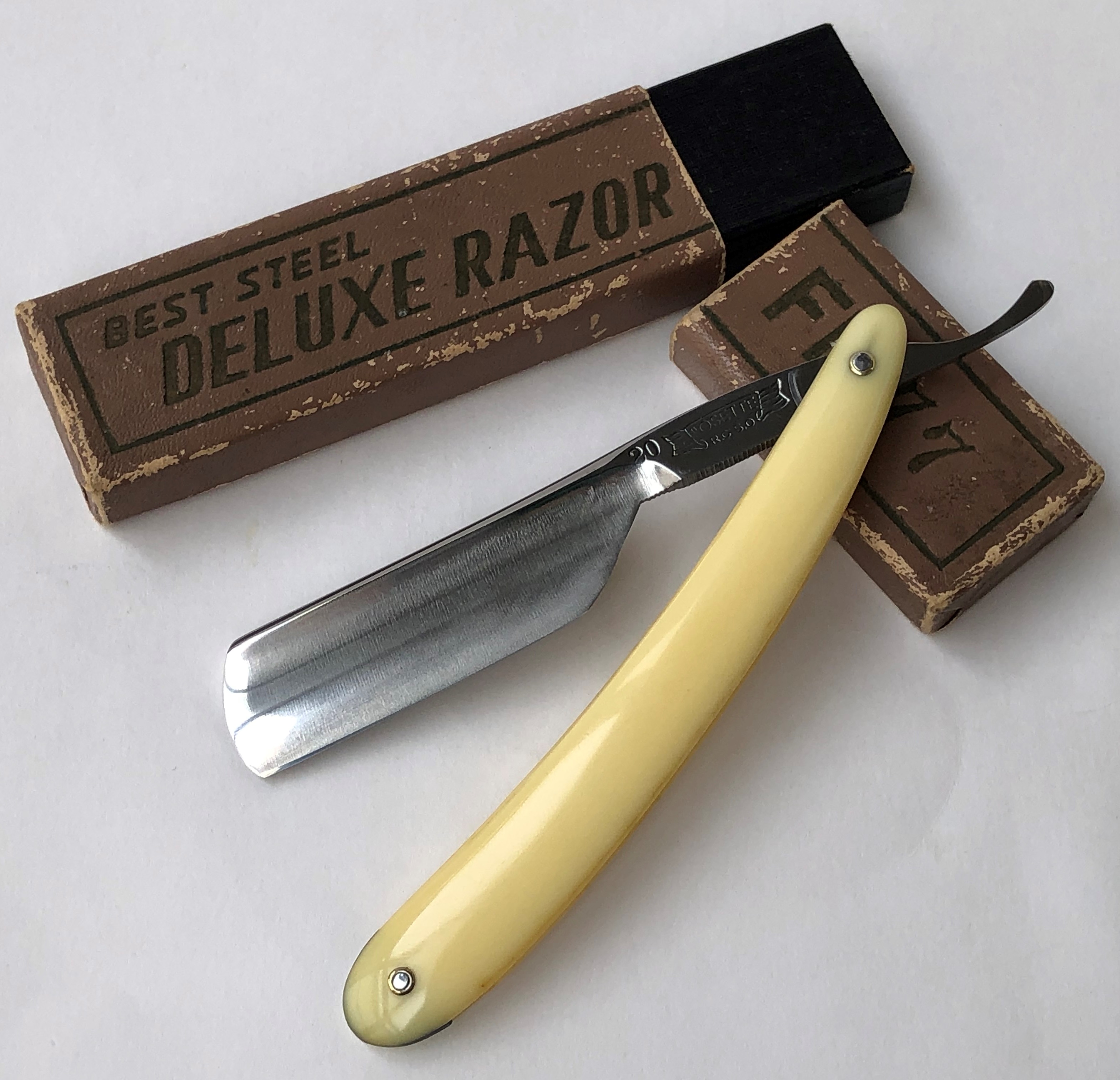 Ширина полотна-17.8 или 5/8 Толщина обушка-4.3 мм. Экстра полная вогнутость. Углеродистая сталь. Первая половина 20-го века производства. Бритва в состоянии близком к идеальному. Без следов пользования.Была разобрана для минимальных косметических работ,с сохранением оригинальных пинов.Идеальная геометрия клинка:кромочка равномерна по всей длине.Сталь чистая от разного рода видимых дефектов. На мой взгляд, подобная форма и размер клинка наиболее удачная и удобная для всего спектра любителей клинковой бритвы. Даже опытный пользователь наиболее оценит все преимущества такой бритвы. Бритва была заточена и лично протестирована. По бритью только положительные впечатления и получение удовольствия от процесса. Сталь качественная, не такая сухая, как на большинстве немецких бритв. Приятный "шелест" сбриваемой щетины. В итоге, бритье чистое, мягкое и без раздражения. Цена-12500 р с доставкой.ПРОДАН Spoiler Show