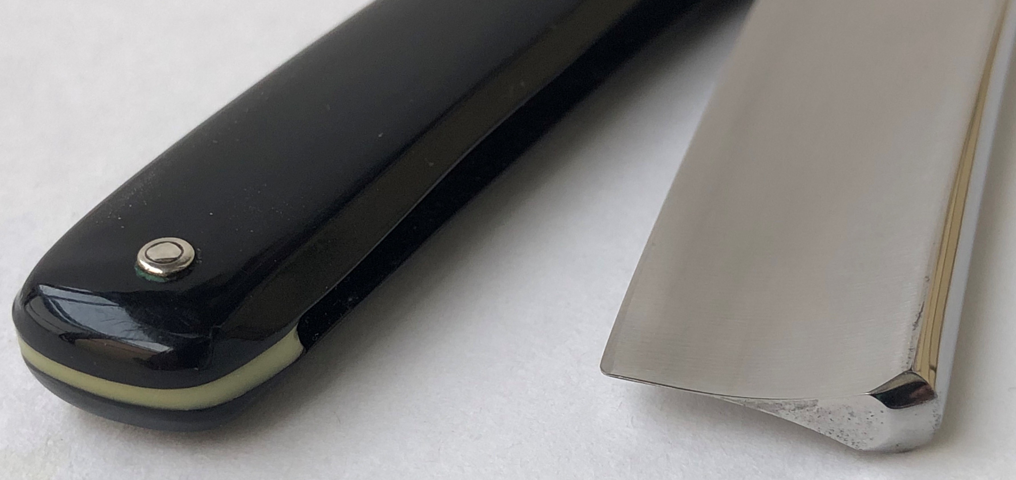 Ширина полотна-20.5 мм. Толщина обушка-5.5 мм. Полная вогнутость. Фирменная углеродистая сталь-PUMASTER. Середина прошлого века. Бритва в хорошем, рабочем состоянии.Была разобрана, для удаления окисления в районе осевого пина.Добавил внутренние шайбы.Родной осевой пин удалось поставить заново.Лицевая сторона имеет небольшой след от взаимодействия металла с пластиком, при многолетнем неиспользовании.Обратную сторону немного освежил и умеренно отполировал.Кромка равномерна по всей длине.Бритва заточена и готова к бритью. Цена-15500 р с доставкой.ПРОДАН Внимание! Важная информация! Spoiler Show