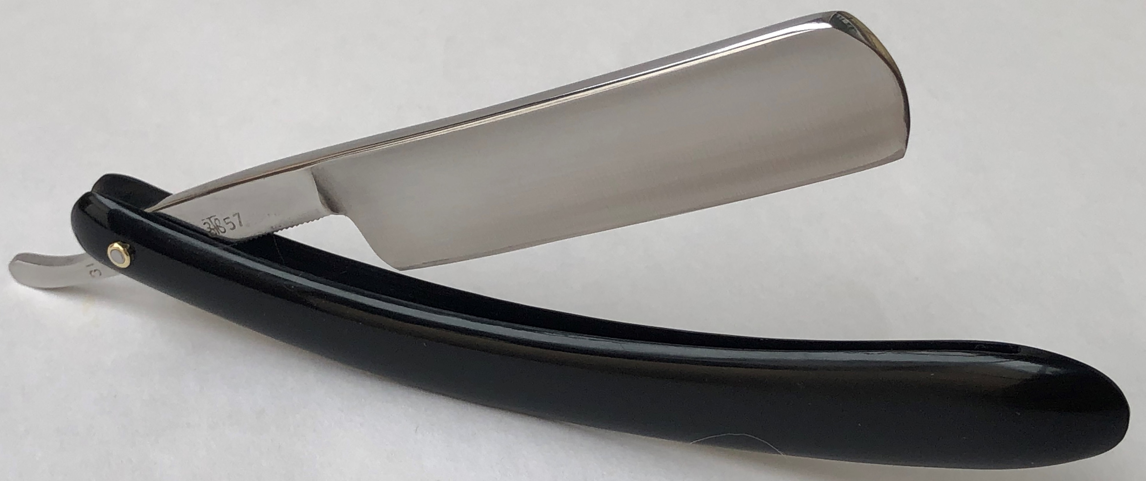 Ширина полотна-17.8 или 5/8 Толщина обушка-4.3 мм. Экстра полная вогнутость. Углеродистая сталь. Первая половина 20-го века производства. Бритва в состоянии близком к идеальному. Без следов пользования.Была разобрана для минимальных косметических работ,с сохранением оригинальных пинов.Идеальная геометрия клинка:кромочка равномерна по всей длине.Сталь чистая от разного рода видимых дефектов. На мой взгляд, подобная форма и размер клинка наиболее удачная и удобная для всего спектра любителей клинковой бритвы. Даже опытный пользователь наиболее оценит все преимущества такой бритвы. Бритва была заточена и лично протестирована. По бритью только положительные впечатления и получение удовольствия от процесса. Сталь качественная, не такая сухая, как на большинстве немецких бритв. Приятный "шелест" сбриваемой щетины. В итоге, бритье чистое, мягкое и без раздражения. Цена-12500 р с доставкой.ПРОДАН Spoiler Show