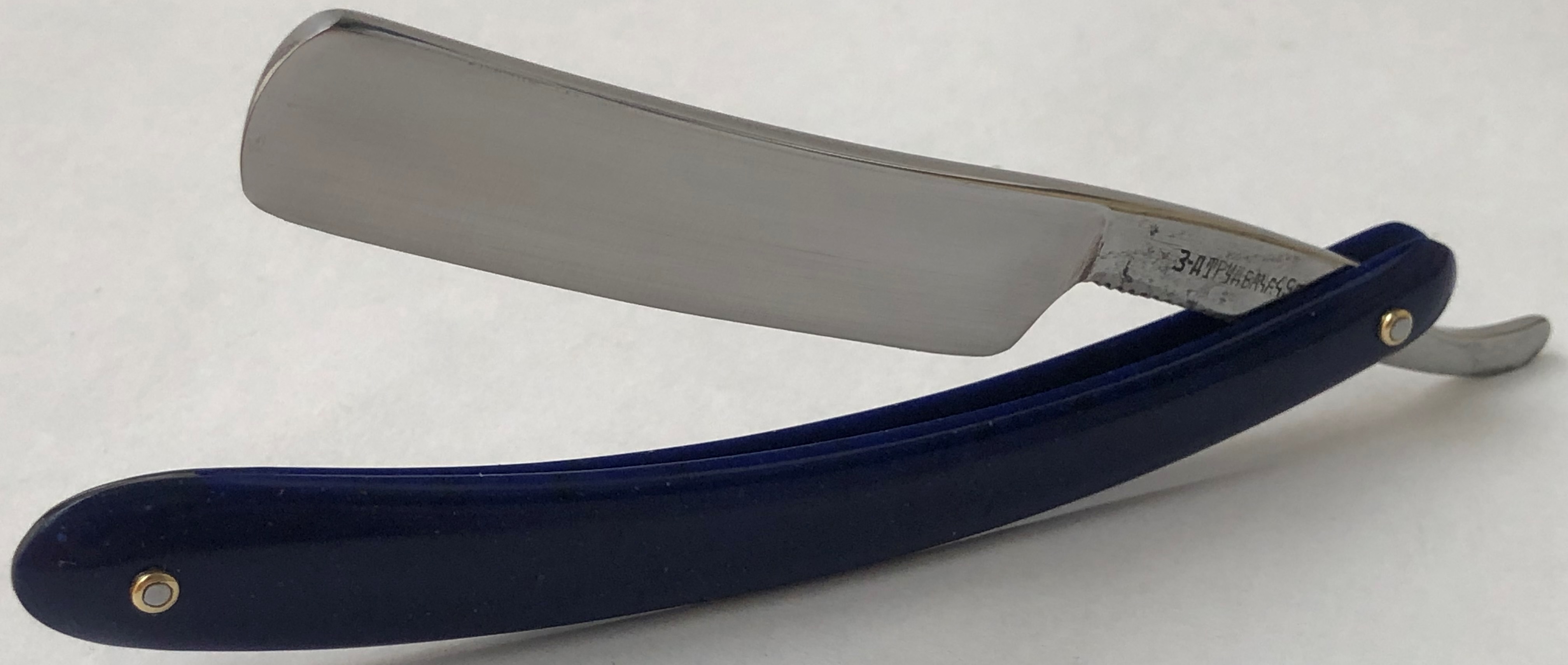 Редкая бритва, на моей памяти ничего подобного никогда не попадалось, особенно в таком непользованном или малопользованном состоянии.Была разобрана, для удаления следов окисления металла, а также с добавлением внутренних шайб.Идеальная геометрия полотна:кромка равномерна по всей длине.Сталь и кромка чистые, без видимых дефектов. Шикарная оригинальная оправа из натуральной кости.Бритва заточена и лично протестирована. Очень качественное и чистое бритье. Не пропустите редкую вещь в свою коллекцию.