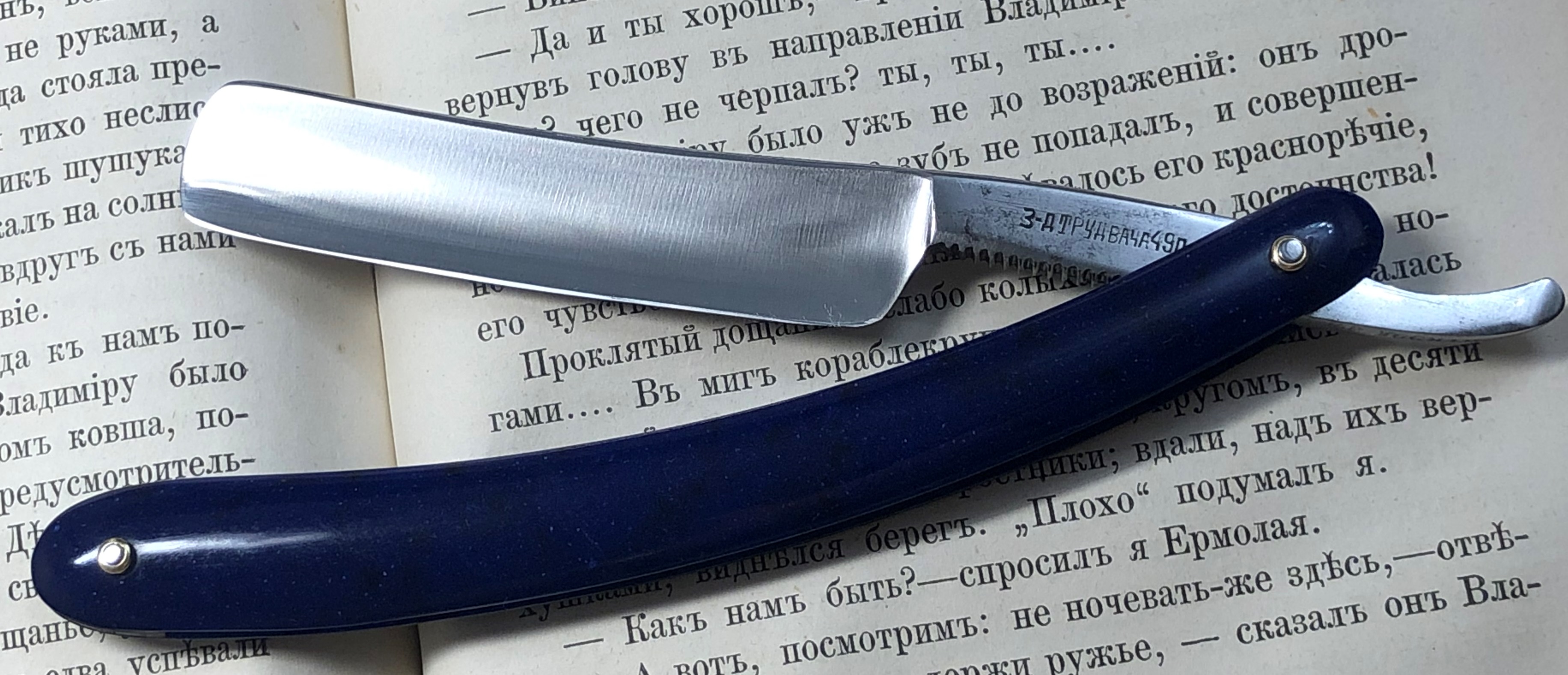 Клинок был восстановлен от следов износа. Немного скорректировал утОчку обушка, перешлифовал и умеренно отполировал.Скошенная пятка, по всей видимости бритва ранее использовалась барберами.Кромочка идеально ровная.Поменял пины на втулки и добавил внутренние шайбы. Одна плашка немного деформирована, но совершенно не критично, и лезвие закрывается по центру.В общем и целом очень приличная, с шикарной сталью старушка, получившая вторую жизнь. И абсолютно недорогая, по цене обычной ординарной непользованной советской бритвы. Особенно подойдет для новичка или любому товарищу, для кого важнее прежде всего качество самого инструмента.