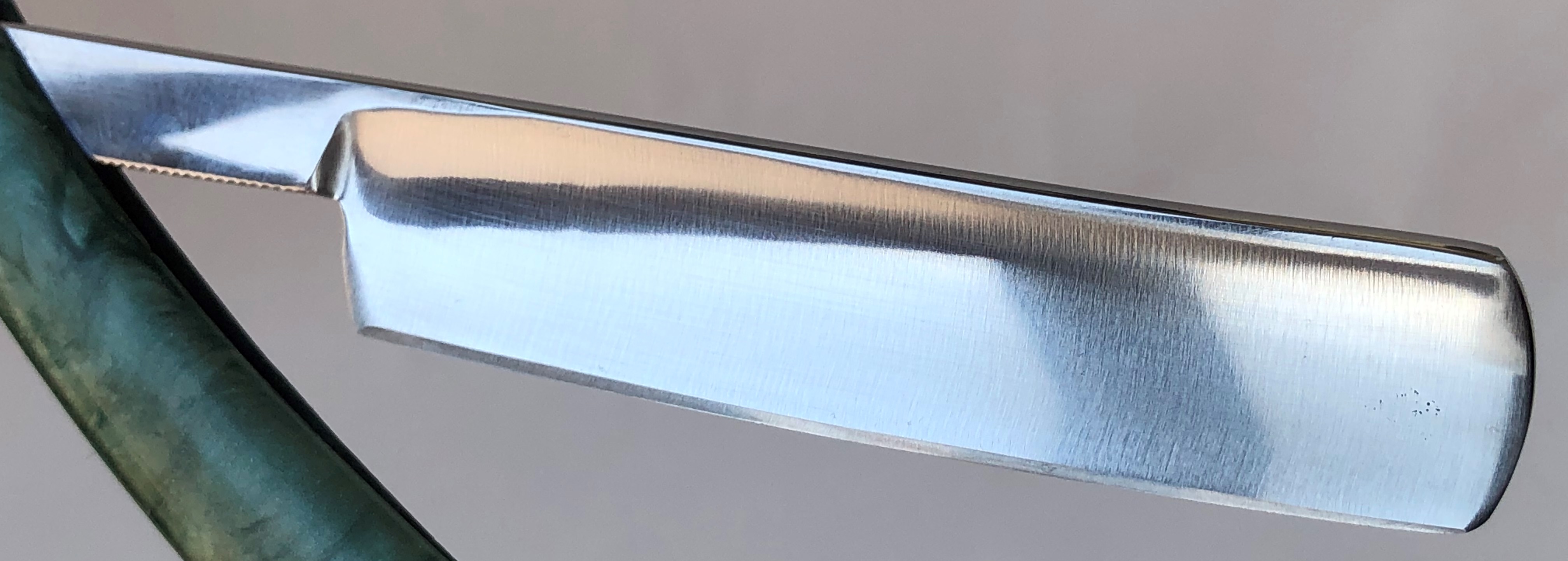 Бритва в прекрасном состоянии, с минимальными следами пользования.Была разобрана для добавления внутренних шайб, с сохранением родного осевого пина.Оригинальная шлифовка и полировка клинка.Идеальная геометрия полотна:кромочка равномерна по всей длине.