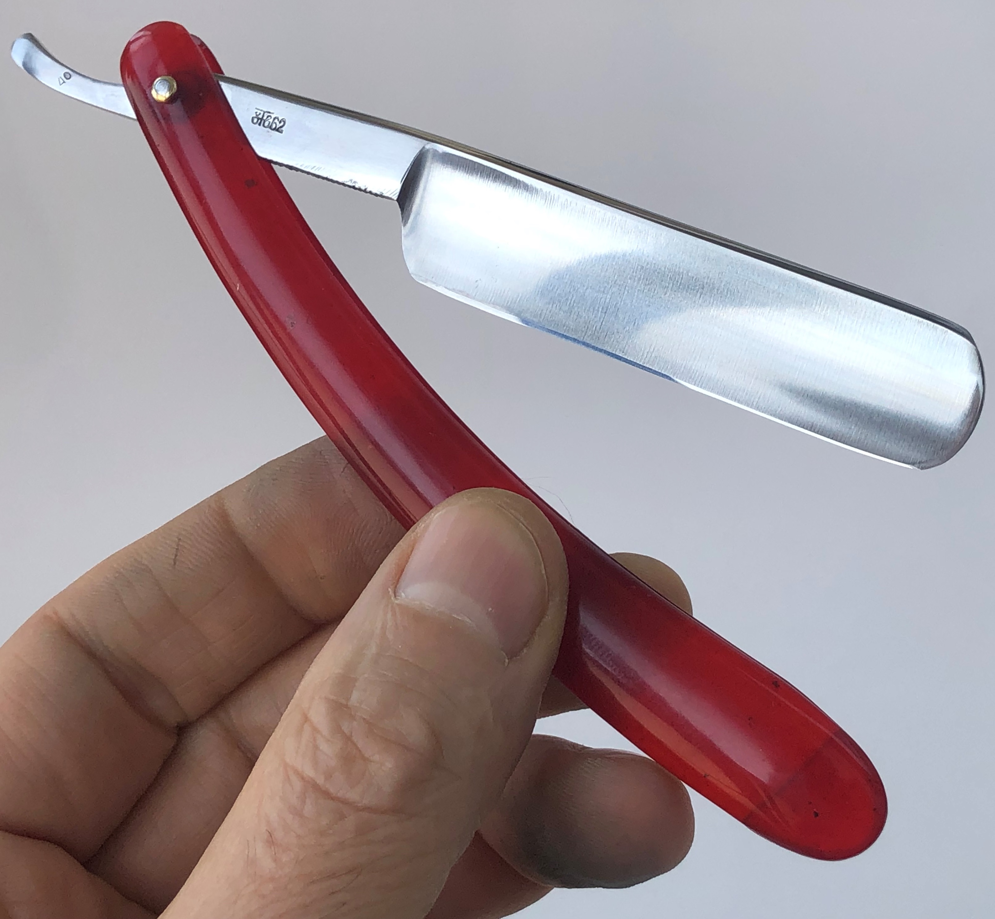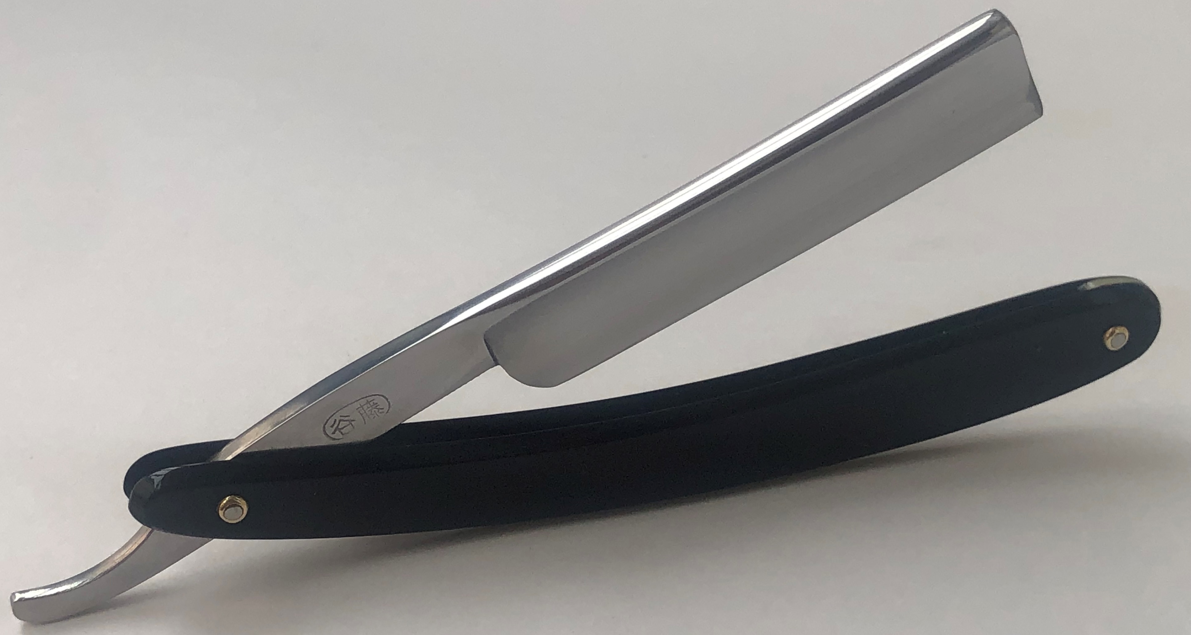 Бритва по своей форме клинка и размерам наиболее подходящая для новичка. Крупная и достаточно тяжёлая.Заточена и готова к бритью.