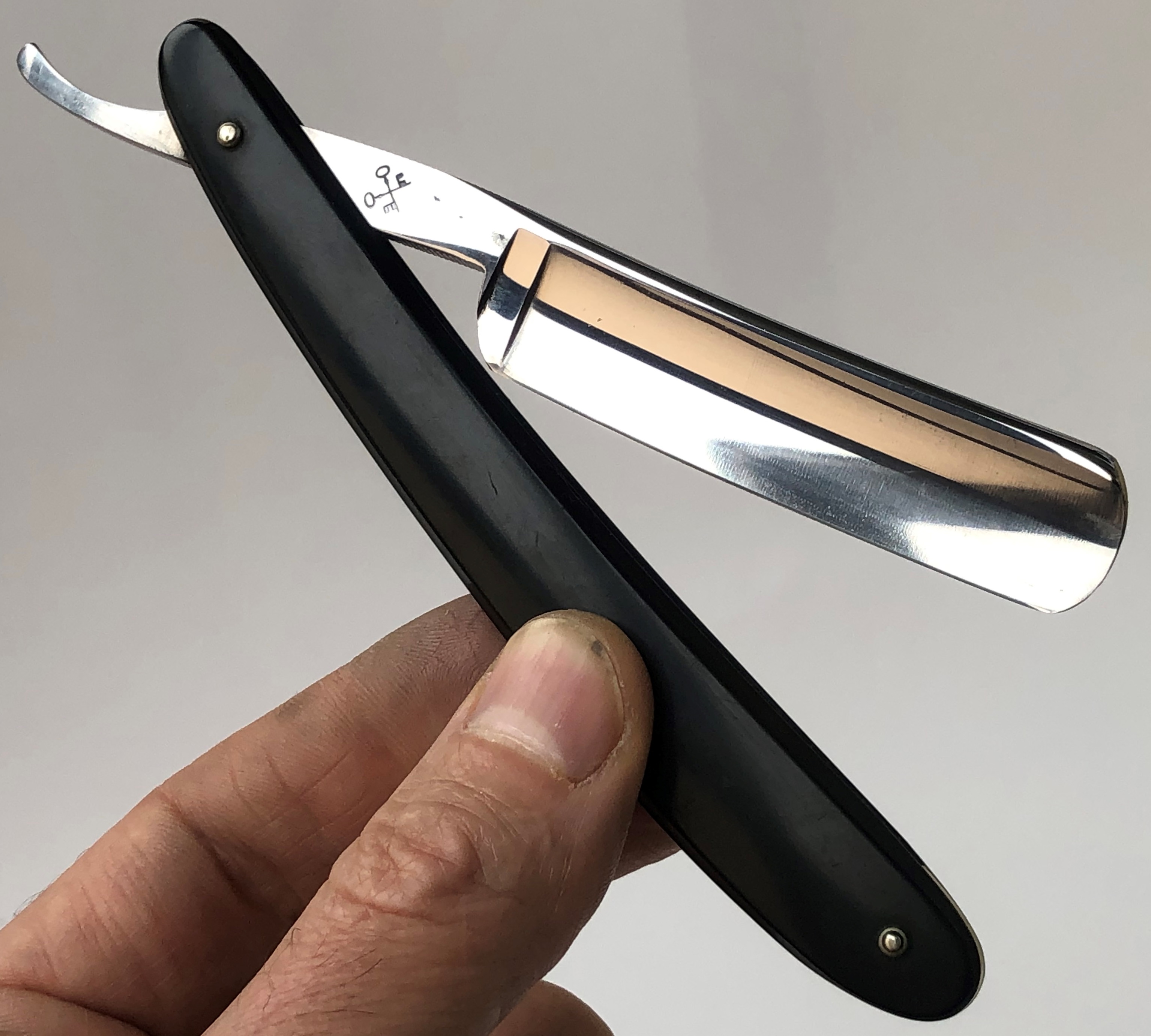 Чистая немка.Для любителей аутентичности.Бритва в хорошем, аккуратно пользованном состоянии. Специально ничего с бритвой не делал. Все в оригинале. Ничего не разбиралось и не ремонтировалось.Родная шлифовка и полировка. Следы старинной патины имеются, как естественный вид такого антикварного инструмента.Идеальная геометрия клинка:кромочка равномерна по всей длине.