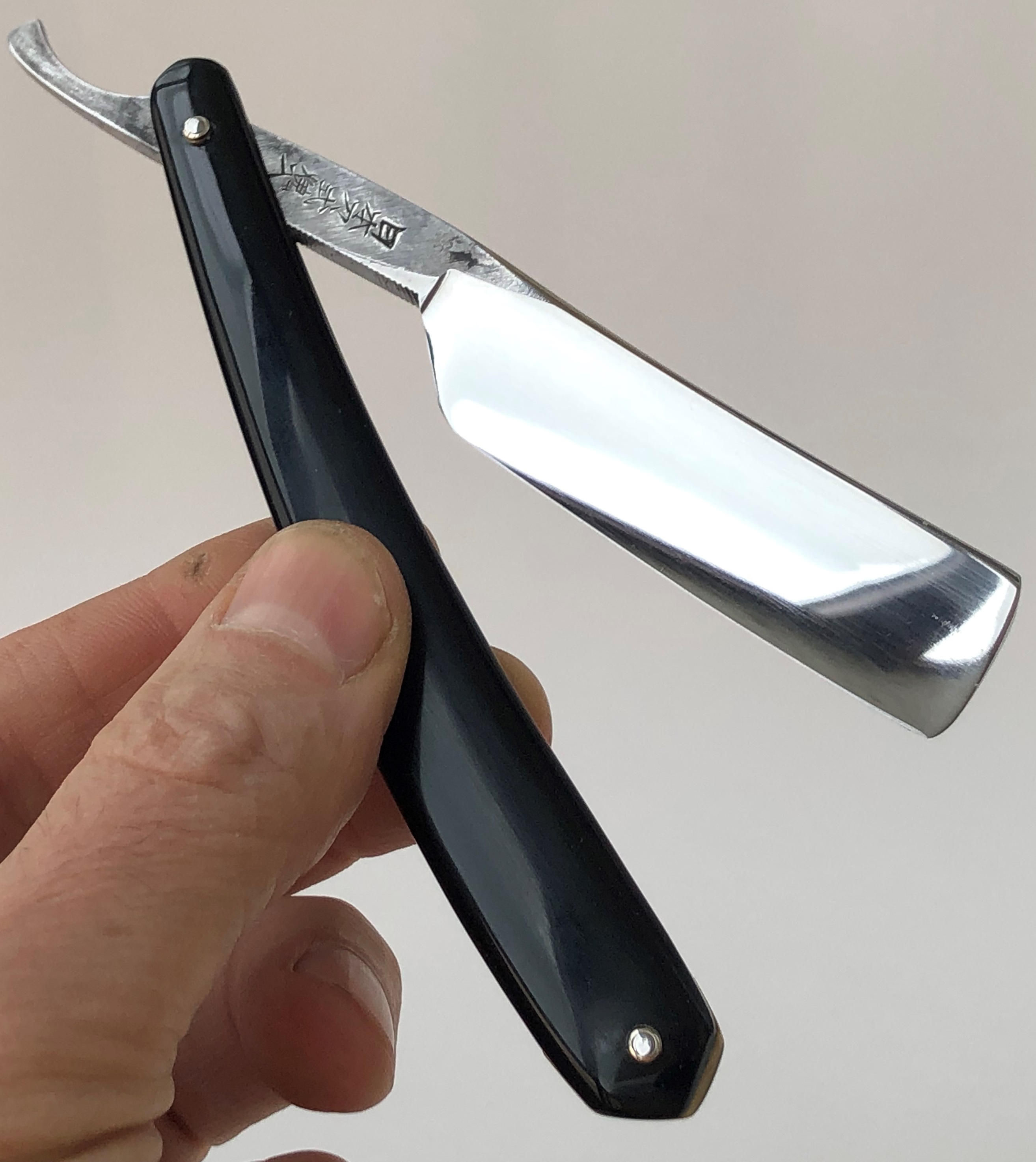 Бритва по своей форме клинка и размерам наиболее подходящая для новичка. Крупная и достаточно тяжёлая.Заточена и готова к бритью.
