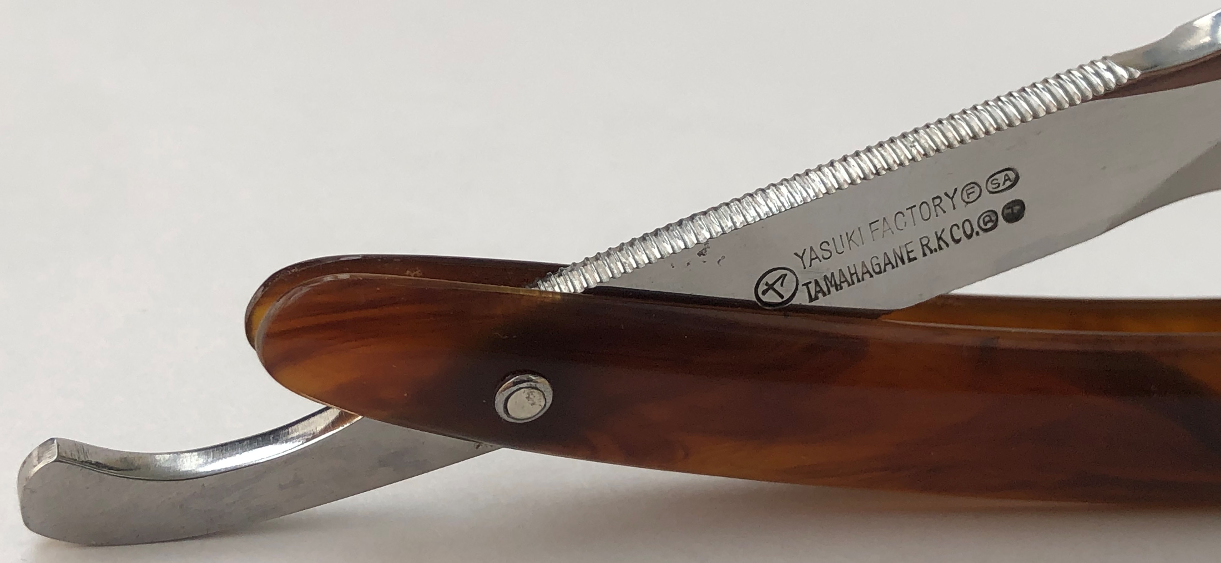 Шикарная и редкая коллекционная вещь. Одни из самых желанных японских бритв для любой коллекции, каждого разор-маньяка.Бритва в пользовании не была, но для порядка разобрал, чтобы удалить немного лишнего окисления в районе осевого пина, не стирая эффектное (родное) воронение эрля.Оригинальные пины были также перебраны и заново установлены, с добавлением еще по одной шайбе с каждой стороны, для усиления конструкции. Продольная ручная шлифовка камнями, по принципу шлифовки катан.Почти "зеркало"с элементами сатина.