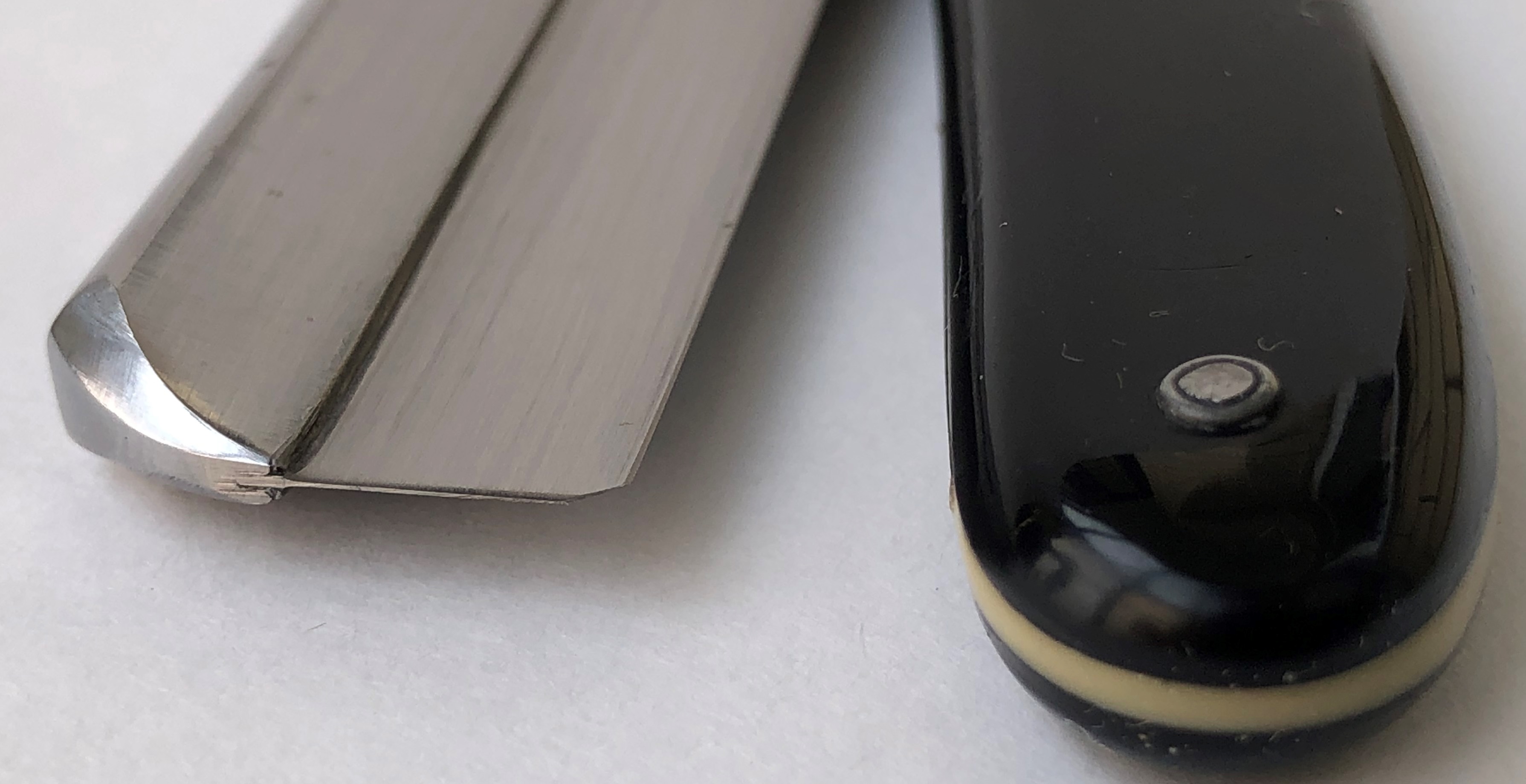 Бритва в хорошем, рабочем состоянии. Привел старушку в порядок, так что еще послужит.Минимальные работы, для удешевления итоговой стоимости бритвы.Небольшую трещинку на ручке проклеил, так что ничего произойти не должно. Ничего не болтается и не проскальзывает. Кромка равномерна по всей длине.Очень удобный размер и форма лезвия как для новичка, так и для любого пользователя. Заточена и готова к бритью.