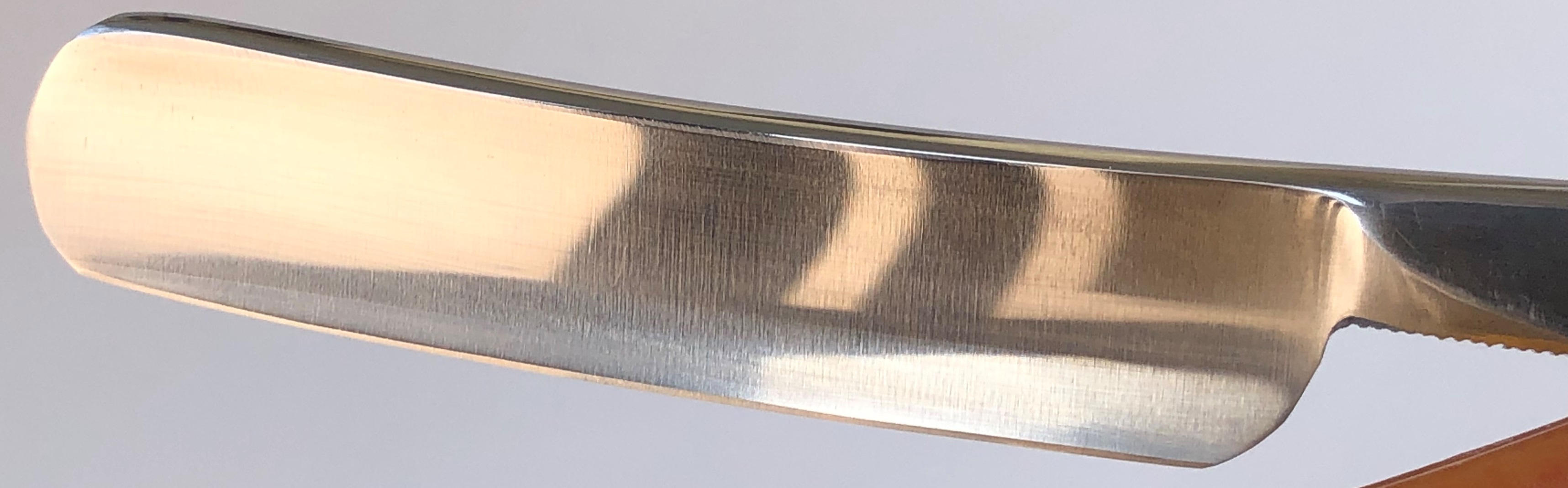 Бритва без следов активного пользования. Ничего не разбиралось и не ремонтировалось. Все в оригинале. Родная шлифовка и полировка полотна. Кромочка равномерна по всей длине. Сталь чистая от разного рода видимых дефектов. Заточена и готова к бритью.