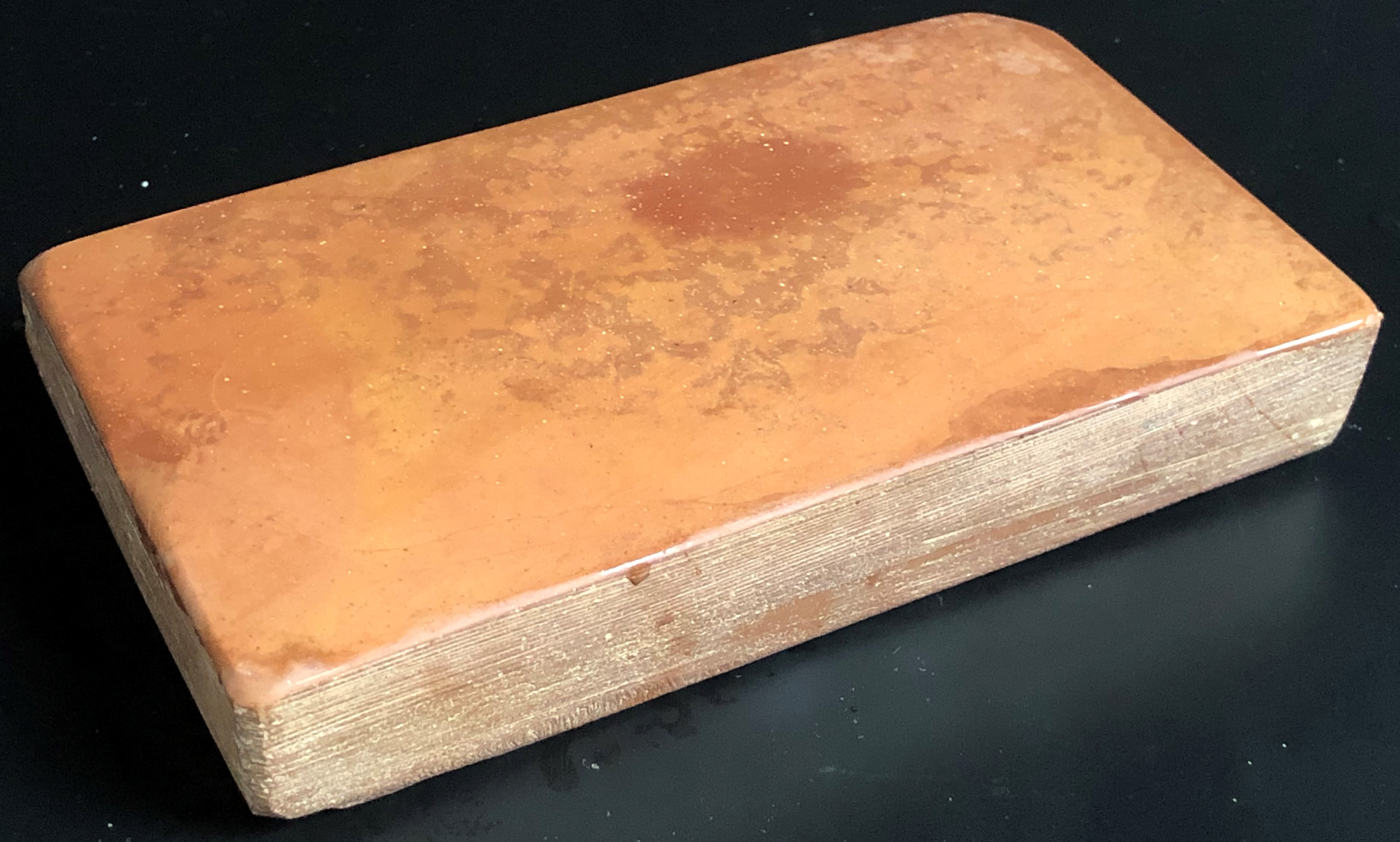 Очень приличный финишный наладонник, для тонкой доводки опасной бритвы, а также для супер-финиша ножей.Еще древний характер торцевого распила. Наверное самый старый среди этих трех. Суспензию выделяет, если не работать с мягкими нагурами. Отлично подойдет в паре с томо-нагурой, примерно такого же качества песка.Можно сказать, камень для чисто классического японского способа доводки и тонкой доводки бритвы, когда используются разные камни, разной твердости и зернистости, а не по методу Ивасаки, когда имеется один Хонияма и несколько нагур. Также может отлично применятся для обслуживания своих чуть затупившихся бритв. Притерт и готов к работе.