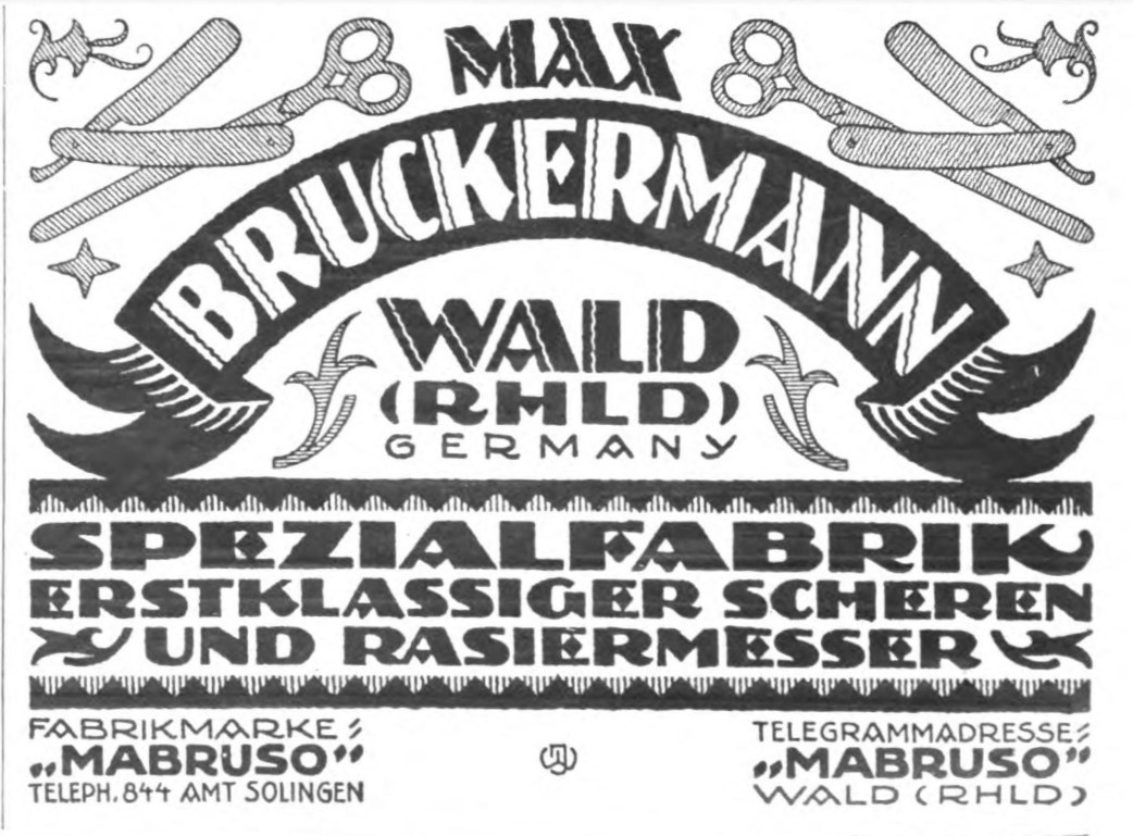 Max Bruckermann, Mabruso. Solingen Wald.В теме "Все фирмы и ТМ из Золингена и оканчивающиеся на "So"..." есть информация, что MABRUSO это Max Bruckermann, но документарного подтверждения не было.
