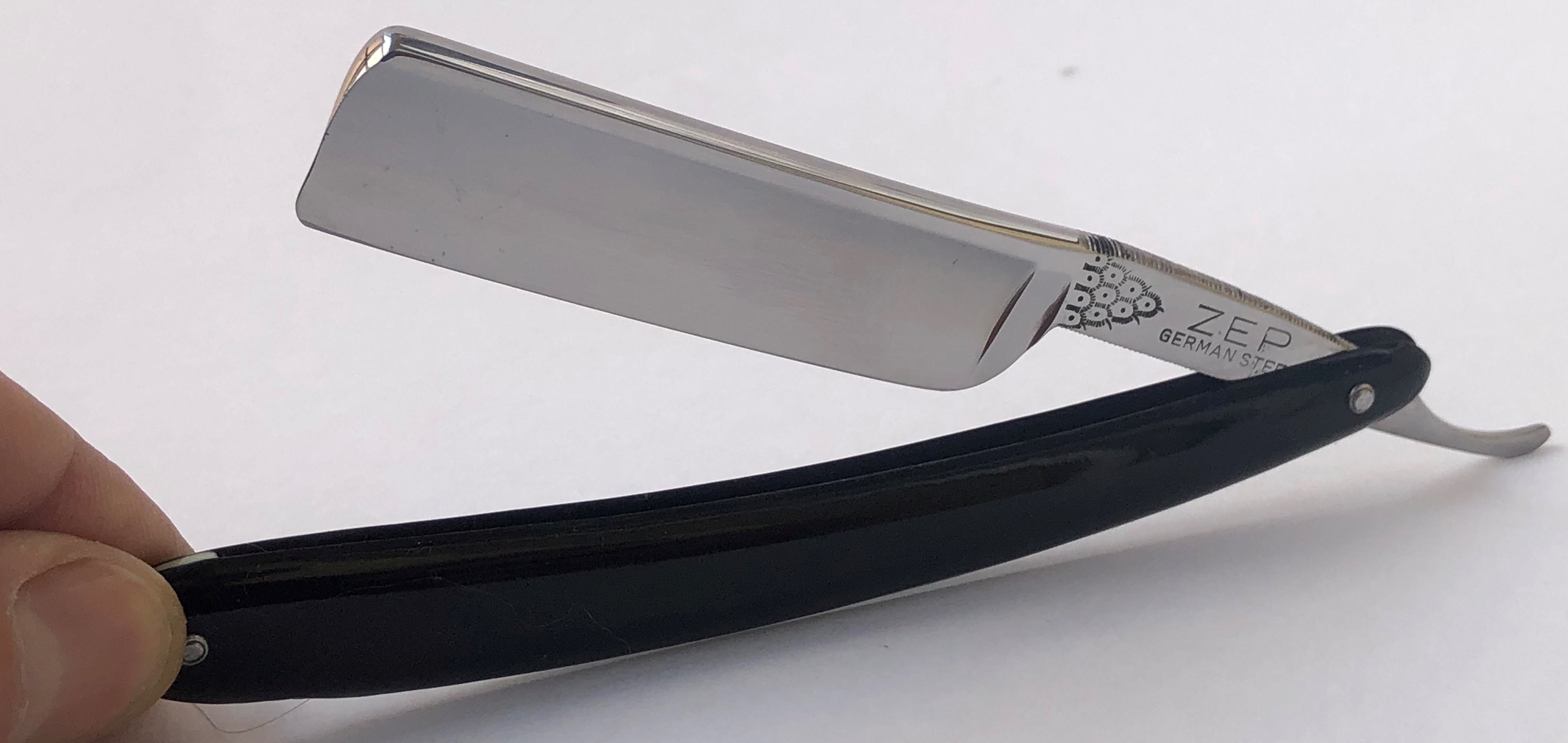 Бритва прибыла из Японии, но на японку совершенно не похожа. По всей видимости все таки немецкая.Лицевая сторона оригинальная, тут ничего не делал. Обратную сторону немного освежил от царапин и патины. Осевой перебрал , добавил внутренние шайбы и заново установил родной пин.Эффектный ажурный обушок,редко когда представленный на опасных бритвах. Идеальная геометрия полотна:кромочка равномерна по всей длине.Тяжёлая, с неплохой сталью и во целом красивая бритва. Будет заточена и подготовлена к бритью.