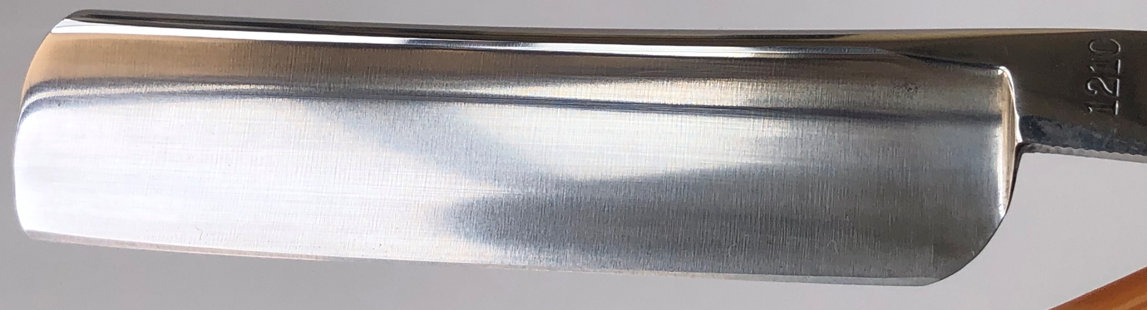 Бритва в хорошем , пользованном состоянии.Клинок был восстановлен,с сохранением вот таких шикарных "следов времени" на хвостовике-эрле.Элегантный тонкий эрль.Шлифовка и умеренная полировка. Кромка равномерна по всей длине.Геометрия клинка на уровне.Новые втулки и внутренние шайбы.В общем и целом неплохая и недорогая бритва.Заточена и готова к бритью.