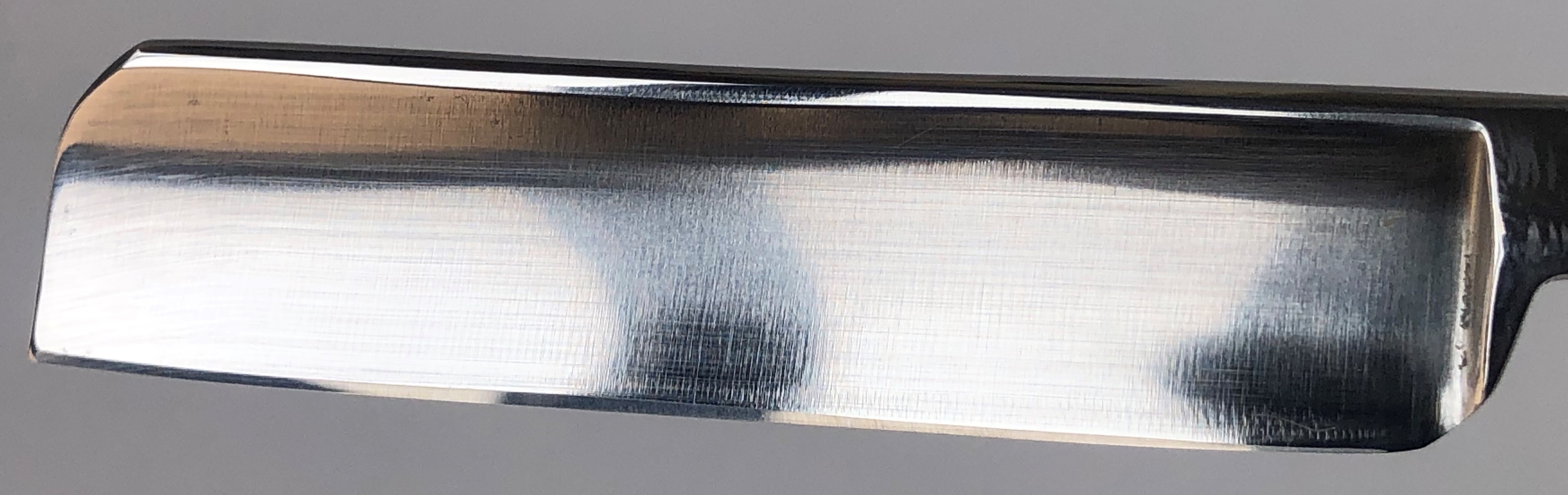 Бритва в хорошем , пользованном состоянии.Клинок был восстановлен,с сохранением вот таких шикарных "следов времени" на хвостовике-эрле.Элегантный тонкий эрль.Шлифовка и умеренная полировка. Кромка равномерна по всей длине.Геометрия клинка на уровне.Новые втулки и внутренние шайбы.В общем и целом неплохая и недорогая бритва.Заточена и готова к бритью.