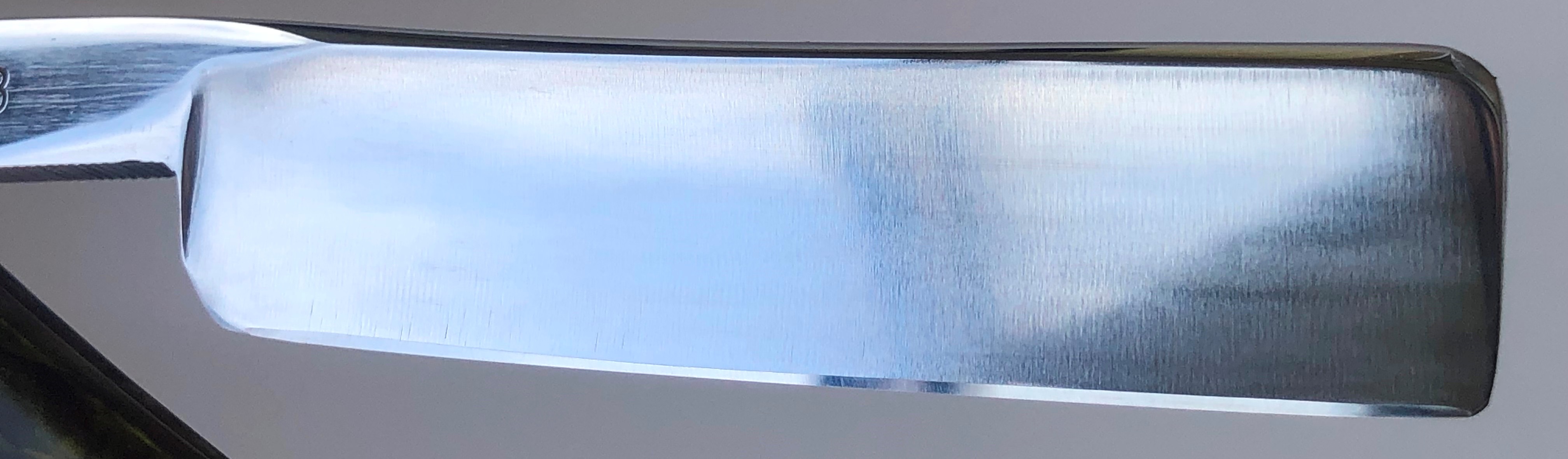 Бритва в пользовании не была, но требовала минимальных, косметических работ, в виде чистки и полировки района осевого пина, а также освежения самого полотна.Пины заменил на двух-цветные втулки.Сталь чистая, без видимых дефектов.Идеальная геометрия клинка:кромочка идеально ровная и еле заметна.Красивая и удобная форма лезвия, не только для обучения новичков, но и для постоянного пользования. Тут шикарная "звонкая" сталь, способная выдавать качественное и мягкое бритьё.На мой взгляд, ну лучше по качеству уже не может ничего быть, если не смотреть на известные имена и дорогущие бренды. Можно сказать, что бритва может быть одной единственной и на все времена. Заточена и готова к бритью. Не пропустите профессиональный ,парикмахерский инструмент в свою коллекцию!