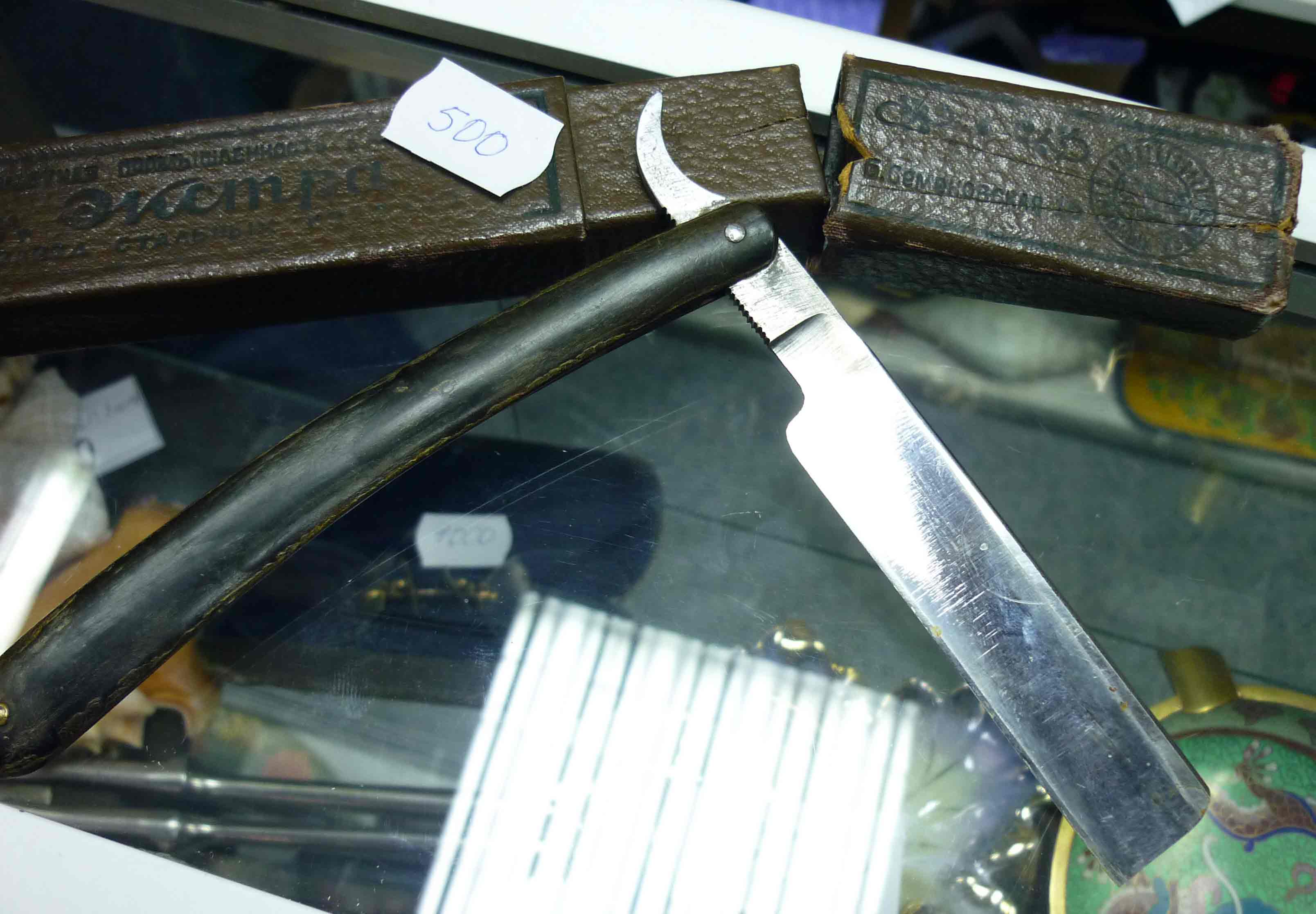 Советский самопал.Вот народ то у нас рукастый был - изголялся. Вроде и бритвы везде продавались и стоили умеренно, а все равно что то да сделают своими руками. Возможно это поделка из мест не столь отдаленных, может и не для бритья использовалась