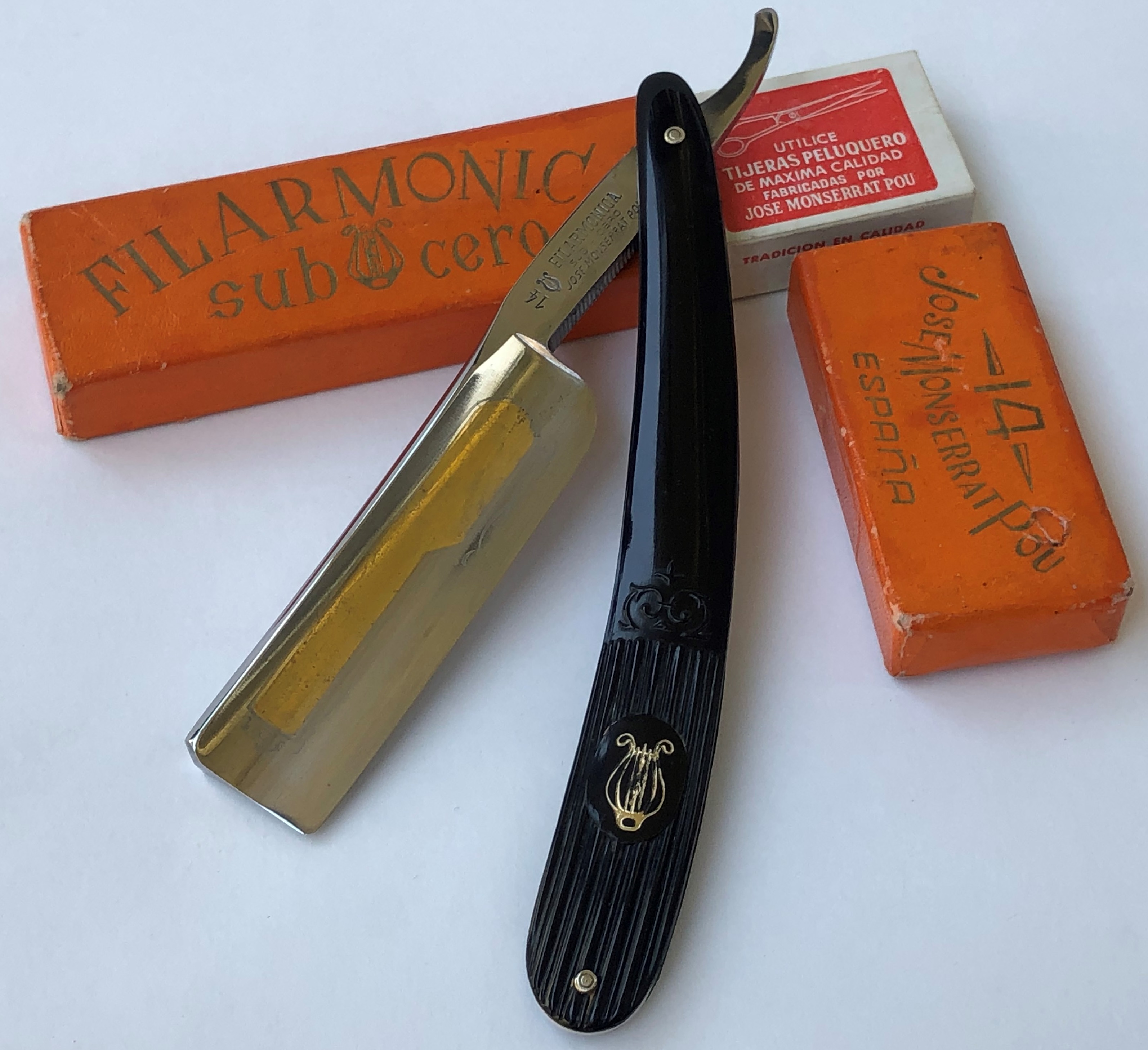 Чья эта бритва, точно сказать не могу. Либо немка, либо англичанка.Но, судя по характеру стали при заточке, то я склоняюсь все таки к немцам.Хотя, могу ошибиться. Бритва судя по всему также середины прошлого века и находится в состоянии близком к идеальному. Крупная, мощная и тяжёлая бритва.Бритва была разобрана, для удаления следов окисления с района осевого пина.На самых минимальных абразивах немного освежил само полотно, а также умеренно отполировал.Кромочка равномерна по всей длине.Оригинальные пины были аккуратно демонтированы и заново установлены.Добавил внутренние шайбы, для надёжности.Сейчас внешний вид у бритвы, как вчера с завода. Очень хорошая, широкая бритва.Не пропустите.