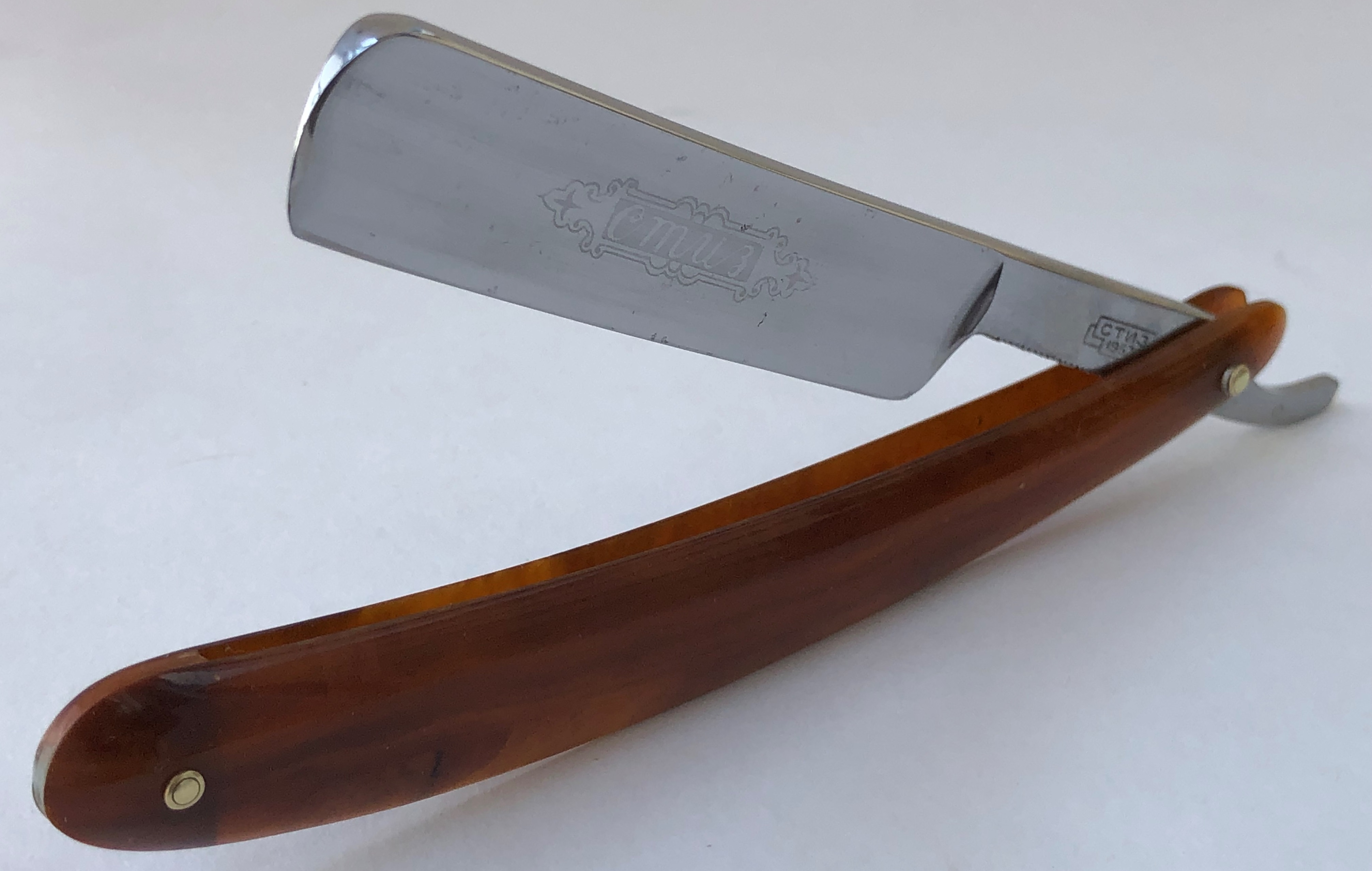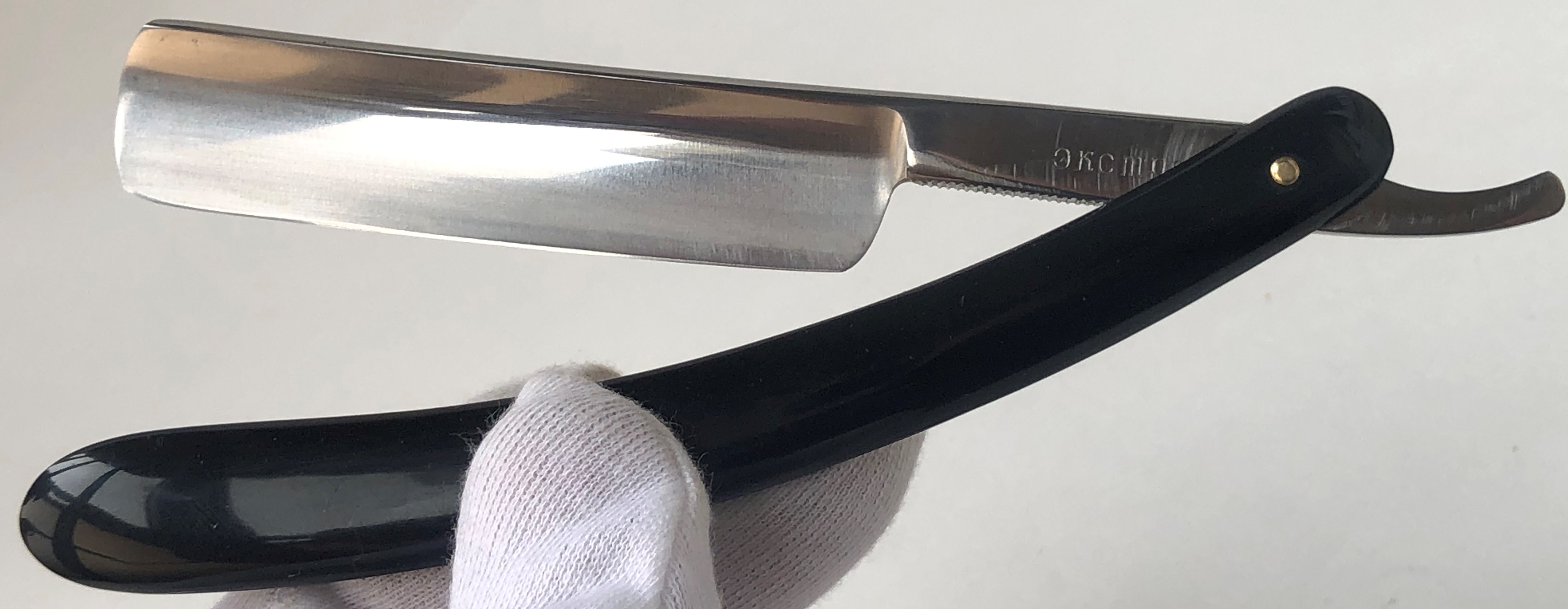 Бритвы данного бренда были как полноразмерные, так и укороченные.Тут имеет место быть как раз укороченная тяжёлая,парикмахерская бритва.Состояние близко к идеальному. Родная шлифовка клинка! Бритва была перебрана, для удаления "следов времени" в районе осевого механизма.Родные пины были заменены на более эффективные двух-цветные втулки , а также добавлены внутренние шайбы.Умеренная полировка.Идеальная геометрия клинка:кромочка равномерна по всей длине и еле заметна.Оригинальная форма клинка для более удобного хвата при бритье, а укороченная РК также прекрасно работает с проблемными и менее доступными участками лица. Серьёзная, с отличной сталью, парикмахерская бритва. Не пропустите!