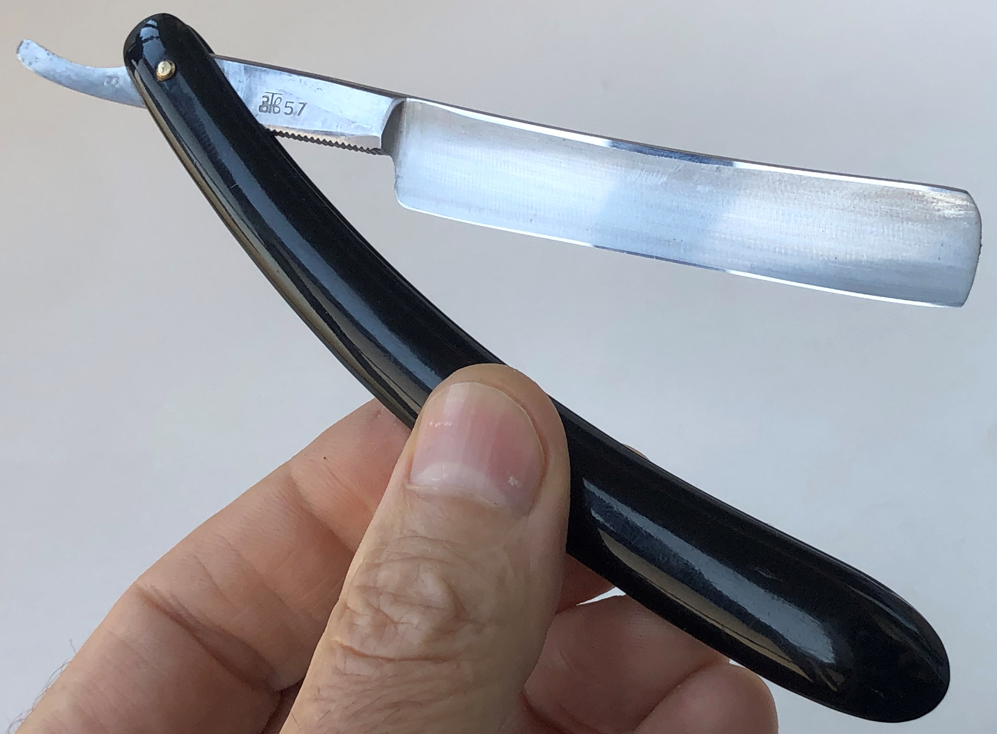 Не часто встречающаяся у меня китайская бритва, японского происхождения. По крайней мере эти бритвы постоянно приходят из Японии. Хотелось бы отметить, что данная бритва не имеет никакого отношения в современному ширпотребу, а была изготовлена в те времена, когда прежде всего ценилось качество. Высококачественная сталь,удобная форма и размер. Можно смело рекомендовать новичкам, как стартовую.
