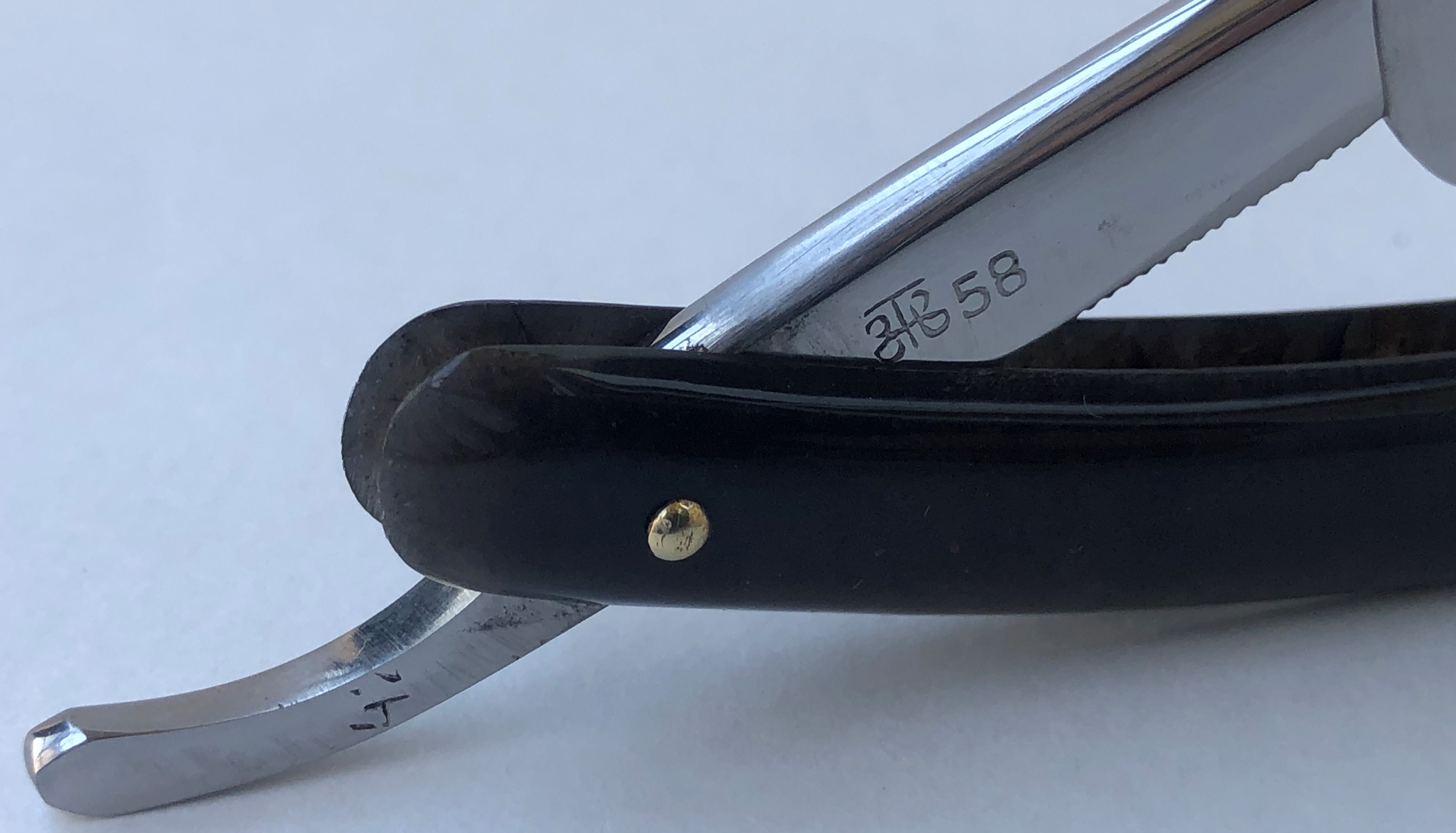 Бритвы данного бренда были как полноразмерные, так и укороченные.Тут имеет место быть как раз укороченная тяжёлая,парикмахерская бритва.Состояние близко к идеальному. Родная шлифовка клинка! Бритва была перебрана, для удаления "следов времени" в районе осевого механизма.Родные пины были заменены на более эффективные двух-цветные втулки , а также добавлены внутренние шайбы.Умеренная полировка.Идеальная геометрия клинка:кромочка равномерна по всей длине и еле заметна.Оригинальная форма клинка для более удобного хвата при бритье, а укороченная РК также прекрасно работает с проблемными и менее доступными участками лица. Серьёзная, с отличной сталью, парикмахерская бритва. Не пропустите!
