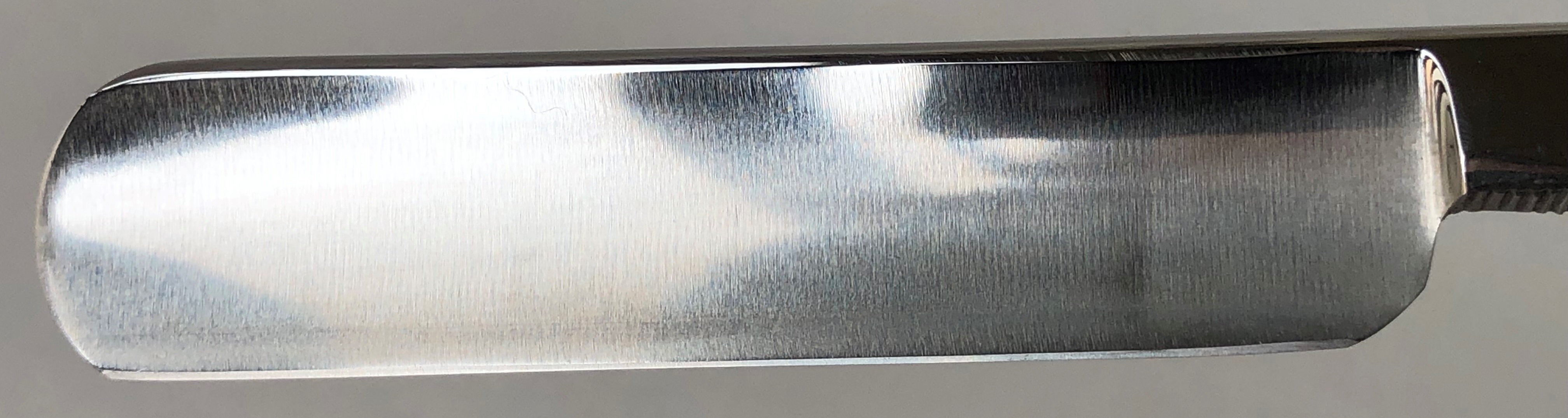 Бритва в пользовании не была, но нуждалась в чистке и полировке. Небольшое количество "следов времени" осталось, но никоим образом не повлияют на дальнейшую эксплуатацию.Комбинированная продольно-поперечная шлифовка.Новые втулки и внутренние шайбы. Идеальная геометрия полотна:кромочка равномерна по всей длине и еле заметна.