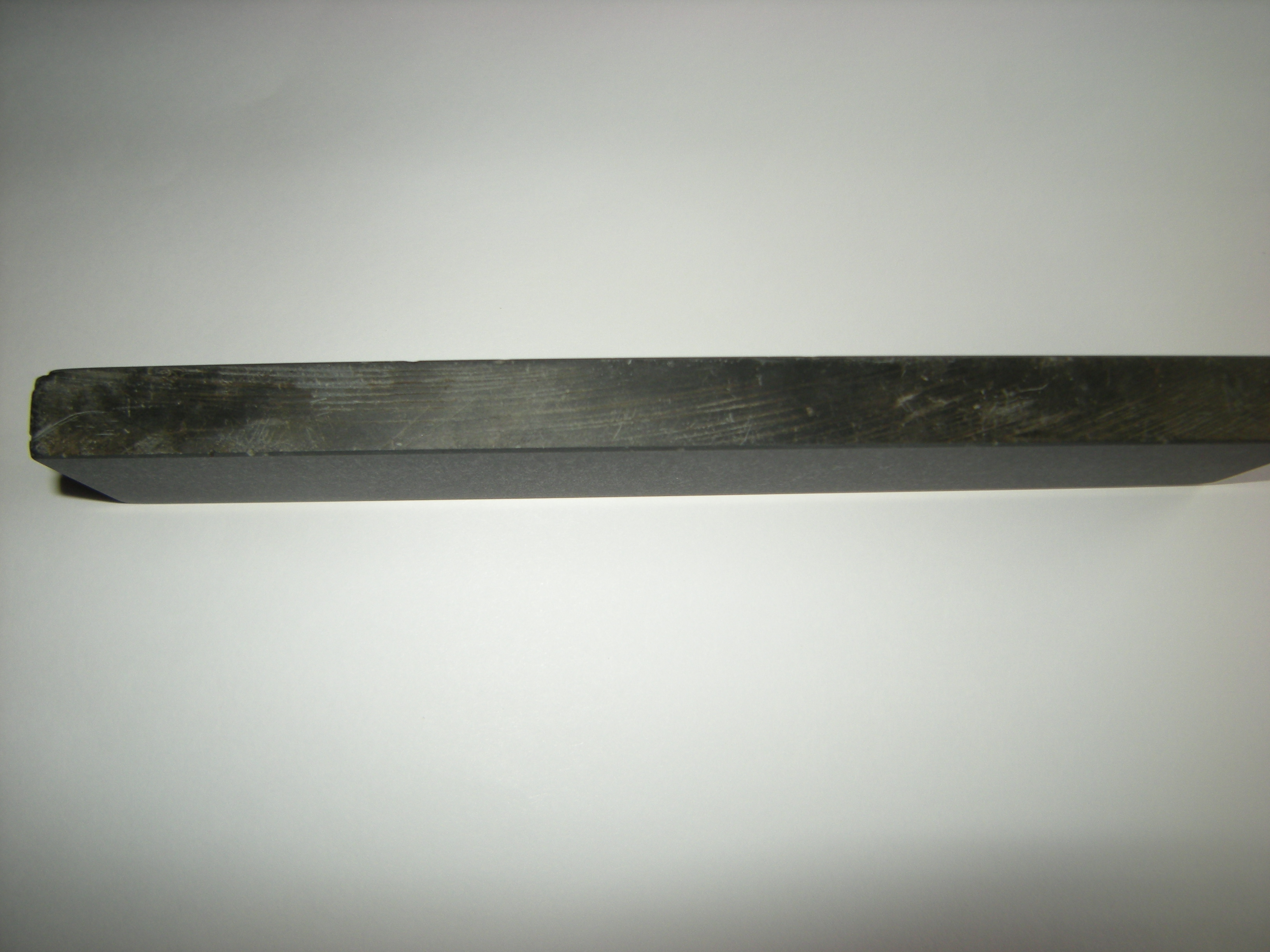 Прошу вашей помощи в атрибутировании камня, который недавно мне посчасливилось заполучить. Цвет матовый черный, суспензия выделяется охотно и имеет белесый цвет. На ощупь гладкий, бархатистый. Насколько я понял, это какой-то сланец, но вот какой? С торцов и боковой стороны видны характерные следы распила. Размеры: 182х33х14 мм. Камень был поцарапан, поэтому пришлось выровнять и притереть его с одной стороны 800, с другой 1000. Ваше мнение, что это может быть за сланец?