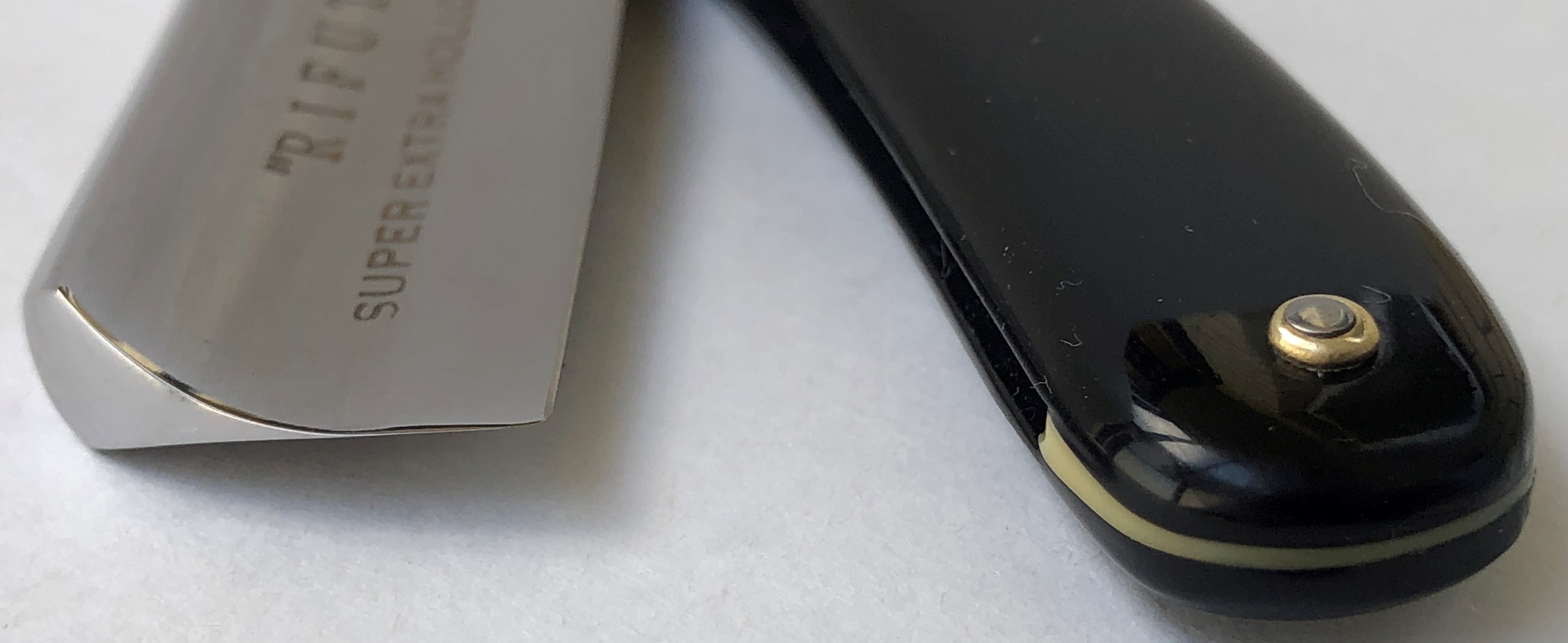 Бритва в пользовании не была, но нуждалась в чистке и полировке. Небольшое количество "следов времени" осталось, но никоим образом не повлияют на дальнейшую эксплуатацию.Комбинированная продольно-поперечная шлифовка.Новые втулки и внутренние шайбы. Идеальная геометрия полотна:кромочка равномерна по всей длине и еле заметна.
