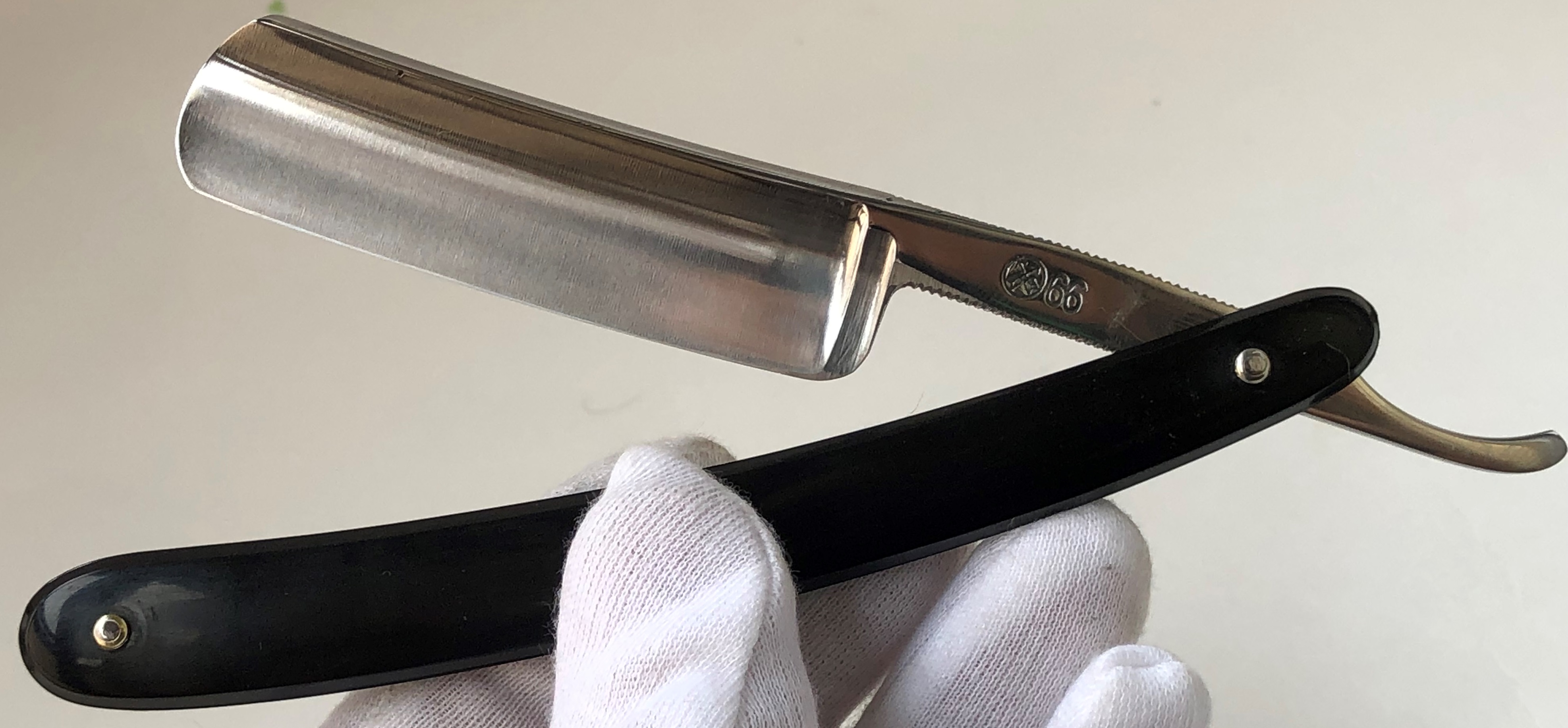 Бритва в очень хорошем состоянии для своих преклонных лет. Форма и размер клинка максимально приближена к оригиналу. Минимальные следы пользования. Никакого регринда. Только умеренная шлифовка и полировка. Родную кривую и некрасивую оправу поменял на другую, от шведского донора, примерно такого же возраста. Пластик,под "слона". Ручка крупнее и в пользовании будет намного удобнее.Новые втулки и внутренние шайбы. Кромочка равномерна по всей длине. Родная коробочка также в очень приличном состоянии. Заточена и готова к бритью. Из своего опыта могу сказать, что подобные бритвы бреют очень хорошо,мягко и чисто. Наверное я бы новичку такую бритву бы не рекомендовал(хотя не факт), а вот опытный пользователь способен в полной мере оценить все преимущества данного инструмента. Бритва как для бритья, так и для коррекции усов и бороды.