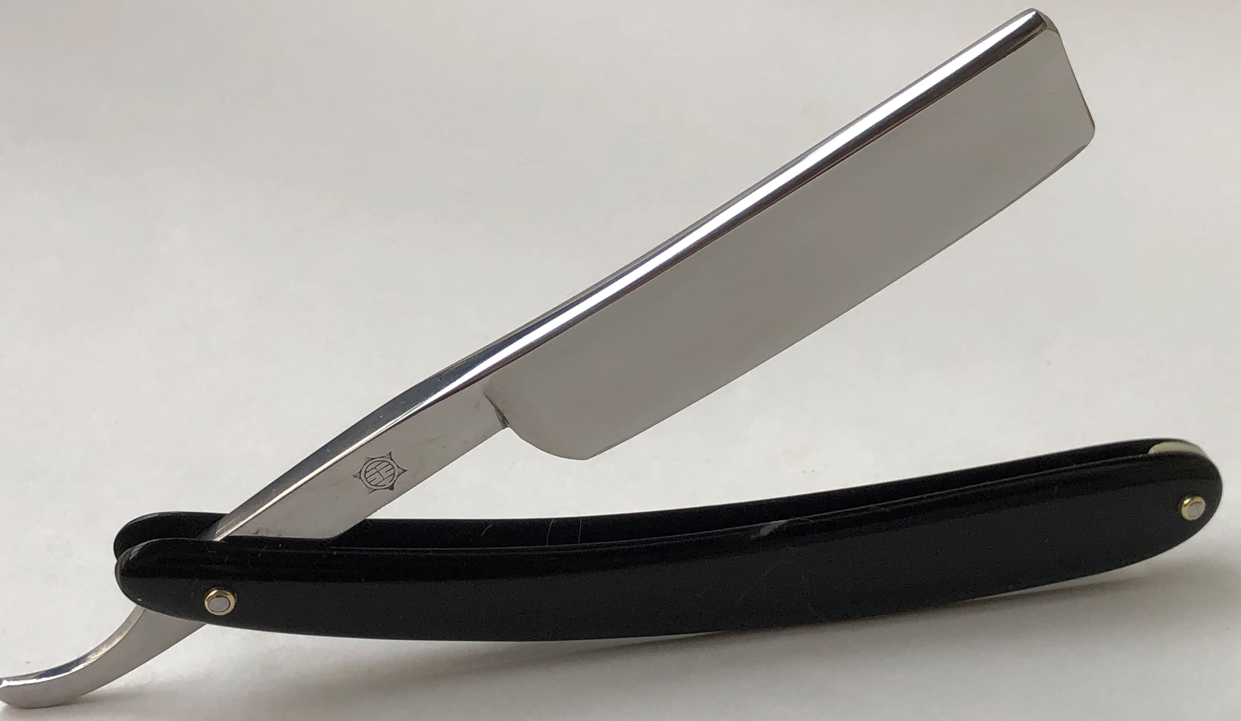 Бритва в очень хорошем и малопользованном состоянии. Никакого регринда, а только умеренная шлифовка и полировка.Идеальная геометрия полотна:кромочка равномерна по всей длине. Чистая сталь, без видимых дефектов. Эффектный, ажурный обушок.Крупная и удобная бритва для пользования.Не пропустите! Бритва заточена и готова к бритью.