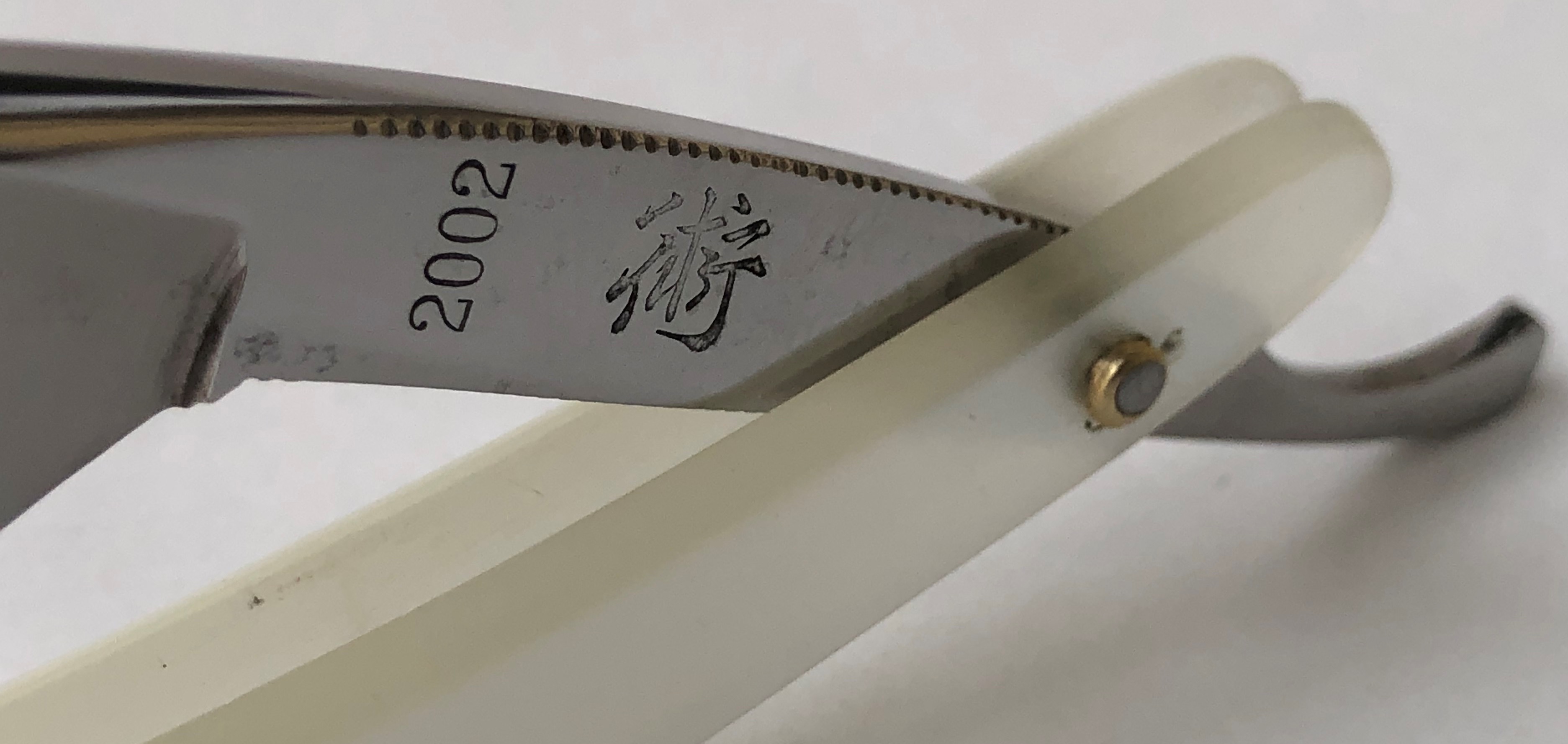 Бритва имеет 6,5 мм  толстенный обушок.На таких японках обычно еще писали по западной традиции:-«for barbers use”. Либо разные вариации.Имеется ввиду,что за счет толстого обушка есть возможность бриться,не выставляя угол атаки ,а ставить ее плашмя,как по идее пользуются барберы. Также фирма Кикубоши ориентировалась на производстве именно профессионального парикмахерского инструмента. У меня имеются старинные японские каталоги для парикмахеров ,с рекламой Кикубоши .Поэтому и бритву подобную можно назвать профессиональной .