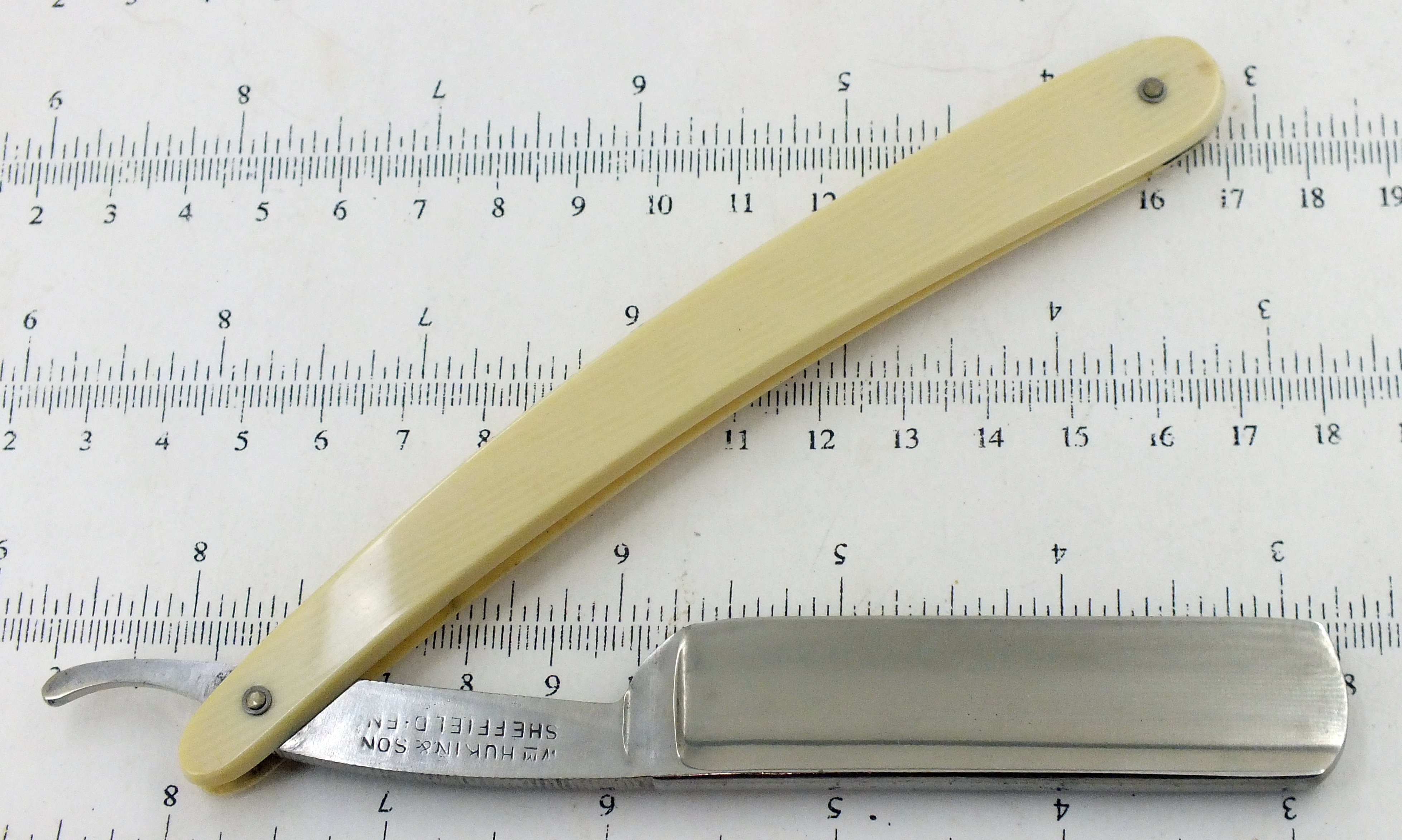 11/16. 1/2 холлоу. Углеродистая сталь, рог, олово. Родная коробка в печальном состоянии. Бритва после реставрации. Следы времени остались. Заточена и готова к бритью. Продано на другом ресурсе Spoiler Show