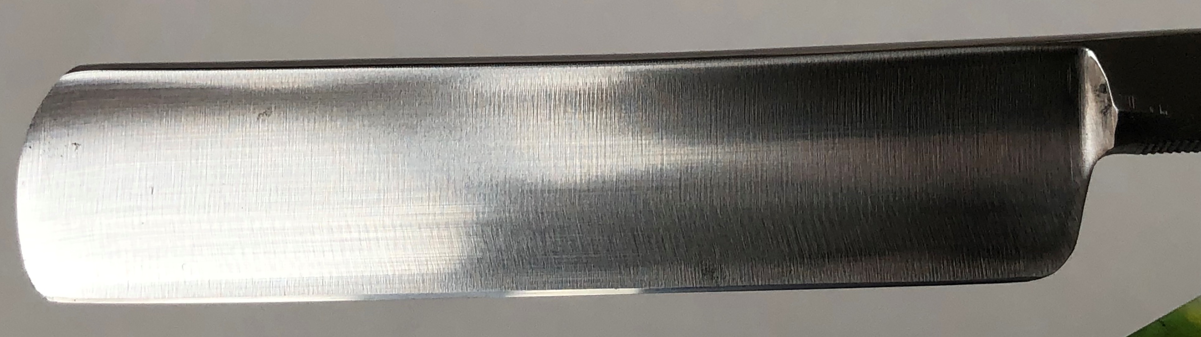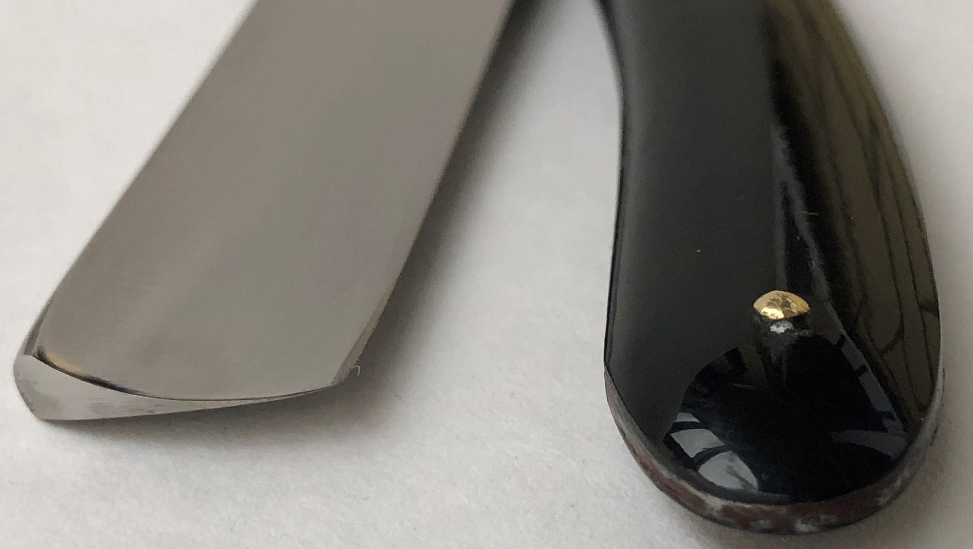 Ширина полотна-21.0 мм. Толщина обушка-6.0 мм. Полная вогнутость. Углеродистая сталь. Середина прошлого века производство. Бритва в пользовании не была, но немного пришлось пройтись на самых мелких абразивах,чтобы удалить микроцарапины, патину и окисление с металла. Состояние практически оригинальное.Ручка была перебрана,добавлены внутренние шайбы, а также обратно установлены родные пины.Идеальная геометрия клинка:кромочка практически незаметна и равномерна по всей длине.Красивая бритва, в прекрасном состоянии,с отличной "звонкой" сталью. Шикарный вариант как для новичка, так и для любого разор-маньяка.. Заточена и готова к бритью. Не пропустите редкую и красивую вещь... Цена-25500 р с доставкой.ПРОДАН Внимание! Важная информация! Spoiler Show