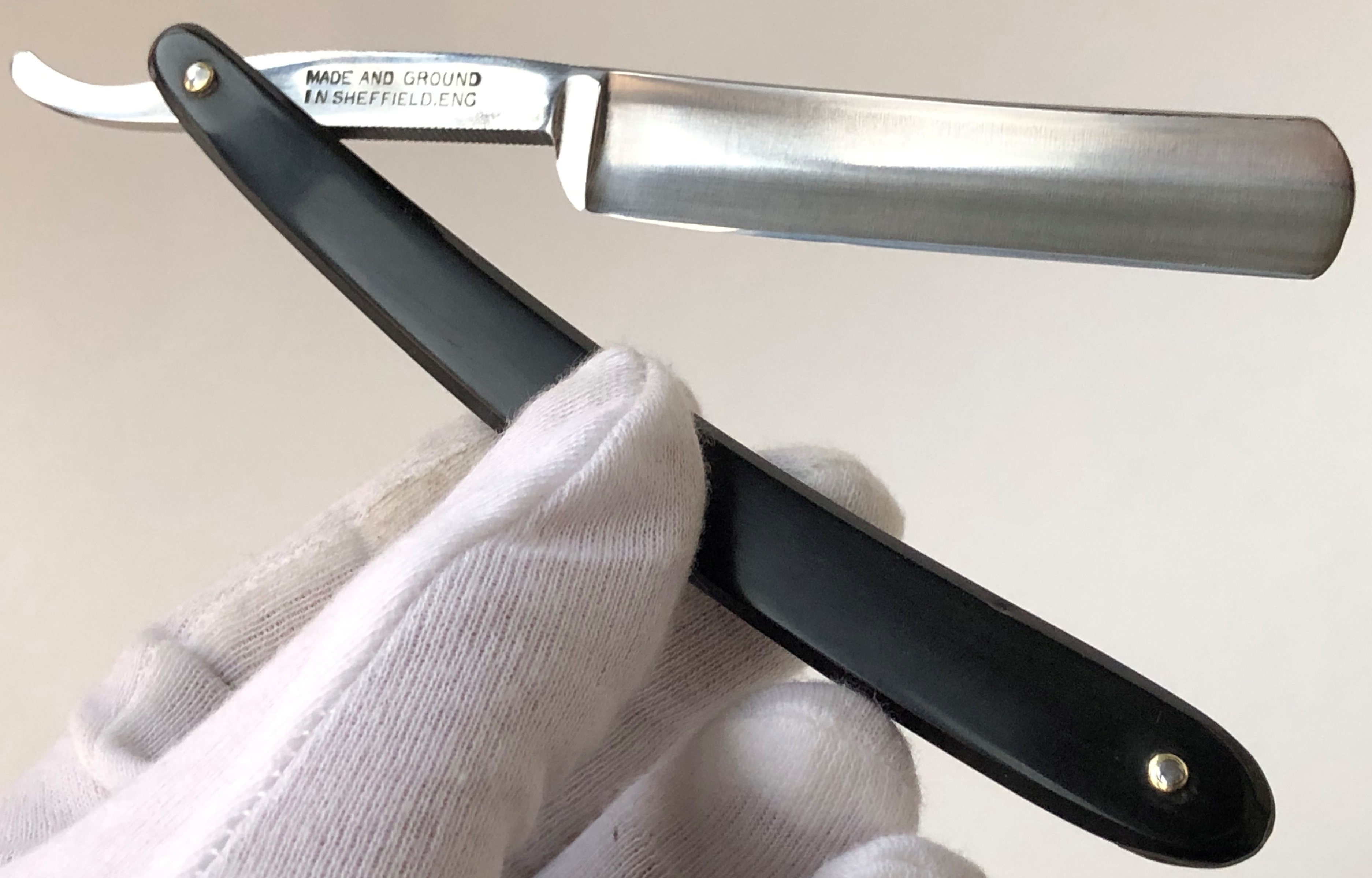 SCISSOR&RAZOR.CO-SHEFFIELD Ширина полотна-18.5 мм. Толщина обушка-6.4 мм. Форма лезвия-клин. Углеродистая сталь. Бритва с минимальными следами пользования,судя по отсутствию сточенности обушка. Никакого глубокого регринда не производилось. Только умеренная шлифовка и полировка.Кромочка с одной стороны ровная, а с другой имеет небольшую ,слегка заметную "волну".Но тут нужно сделать скидку на приличный возраст инструмента. Также,на сколько известно,на старинных клинах в то время не сверлили отверстие под осевой пин, а пробивали.Поэтому само отверстие было не всегда правильной формы, достаточно широким и неровным. В данном экземпляре отверстие пробито не только не перпендикулярно эрлю, но и немного в сторону, поэтому сам клинок относительно оправы лежит как бы на боку, но в тоже время сами плашки не цепляет.Поэтому данный нюанс никак не влияет на дальнейшую эксплуатацию бритвы,поэтому что то тут исправлять не стал и оставил как есть. Особо хочется отметить старинный "медовый" ,натуральный и родной рог оправы. Сама по себе среднего размера. Смею предположить, что ширина +- родная, так как следов от камней на обушке не было, т.е. бритва если и использовалась, то крайне мало. Само название бритвы "ножницы и бритва" как бы намекает, что фирма занималась изготовлением профессионального инструмента. Бритва тяжёлая и хорошо чувствуется в руке. Со всеми нюансами бритва для меня недорогая, поэтому 14500 р с доставкой будет самое то.. Заточена и готова к бритью. Внимание! Важная информация! Spoiler Show