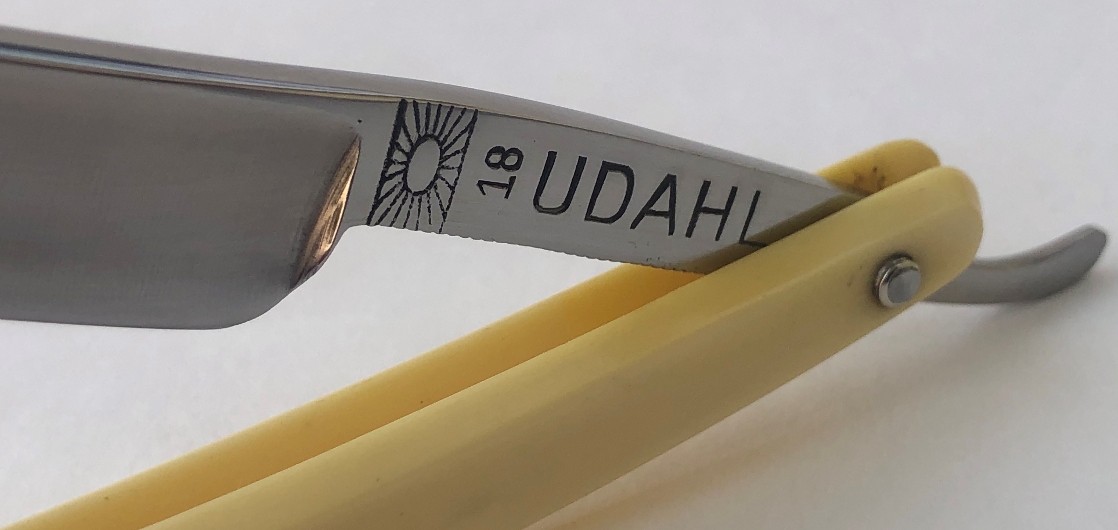 UDAHL 18-Solingen. Ширина полотна-15.2 мм. Толщина обушка-4.2 мм. Полная вогнутость. Углеродистая сталь. Первая половина прошлого века. Бритва в пользовании не была.Находится в прекрасном состоянии для своих преклонных лет. Минимально была освежена от старинной патины и царапин, с добавлением внутренних шайб и сохранением родных пинов.Отличная "звонкая" углеродка. Идеальная геометрия полотна:кромочка равномерна по всей длине и еле заметна. Оригинальная коробочка! Бритва подойдёт как для новичка, так будет удобна для опытного пользователя, а также для коррекции усов и бороды. Очень хороший и удобный старинный экземпляр, так что не пропустите. Цена-12500 р с доставкой.ПРОДАН Внимание! Важная информация! Spoiler Show