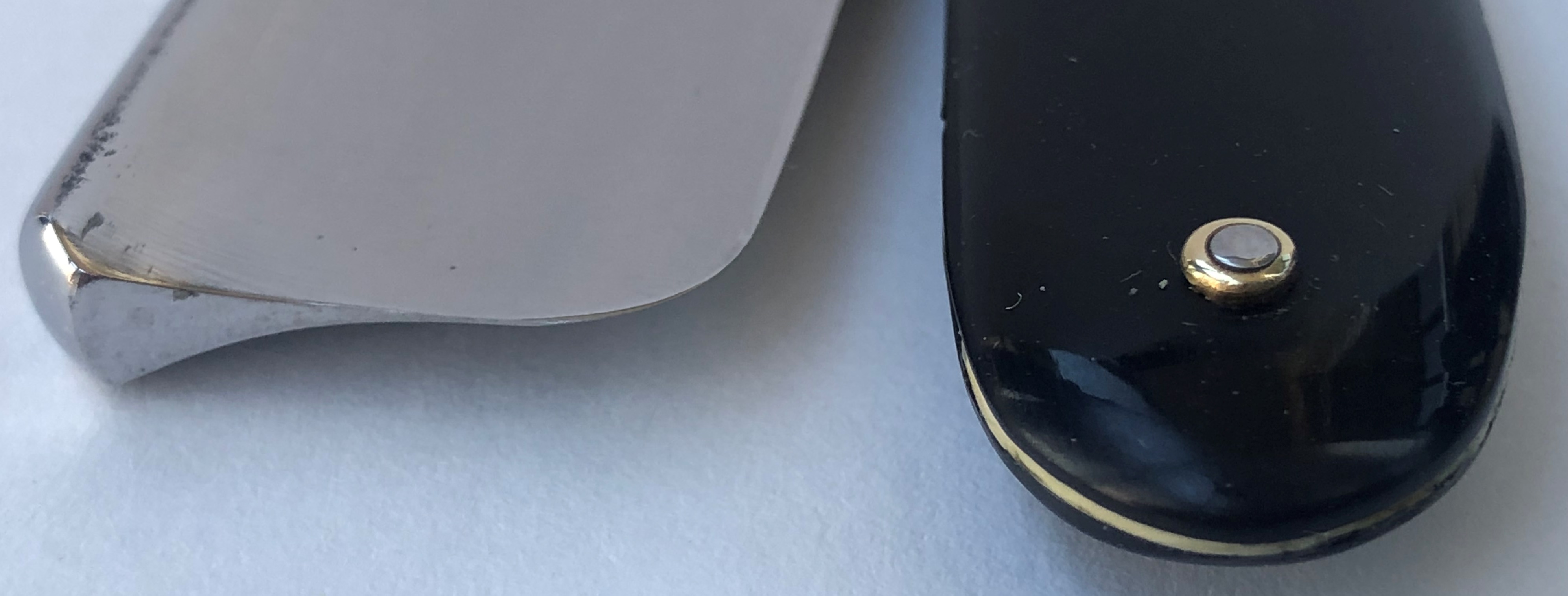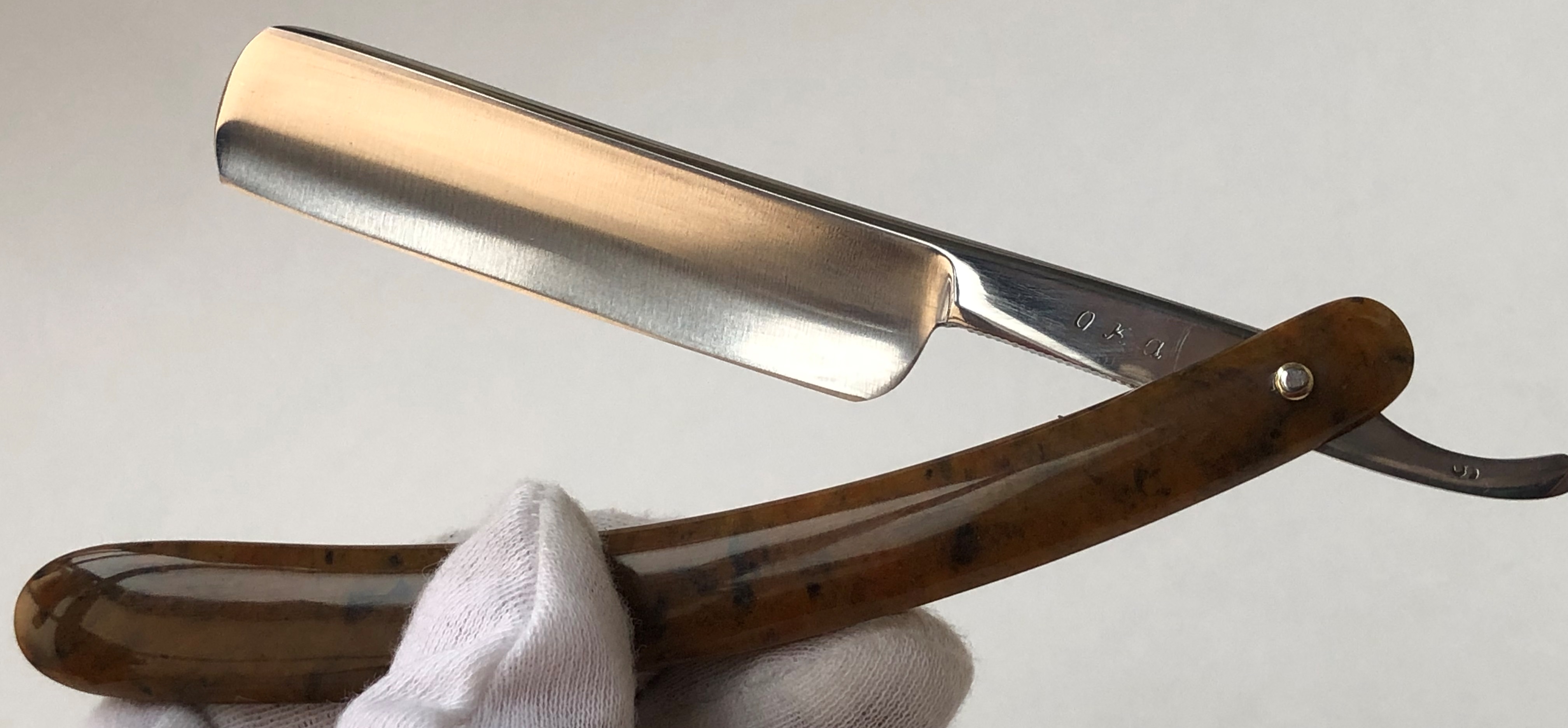 Ширина полотна-17.2 мм. Толщина обушка-4.3 мм. Полная вогнутость. Углеродистая сталь. Бритва в очень хорошем состоянии. Клинок немного освежен от старинной питины.(Небольшое пятнашко на лицевой стороне полотна не в счет).Идеальная геометрия клинка:кромочка равномерна по всей длине. Добавил внутренние шайбы и поставил двух-цветные втулки. Родная коробочка! Бритва заточена и готова к бритью. Отличный вариант для новичка и не только . Не пропустите недорогой и полностью готовый в бритью вариант. Цена-3850 р с доставкой.ПРОДАН Внимание! Важная информация! Spoiler Show