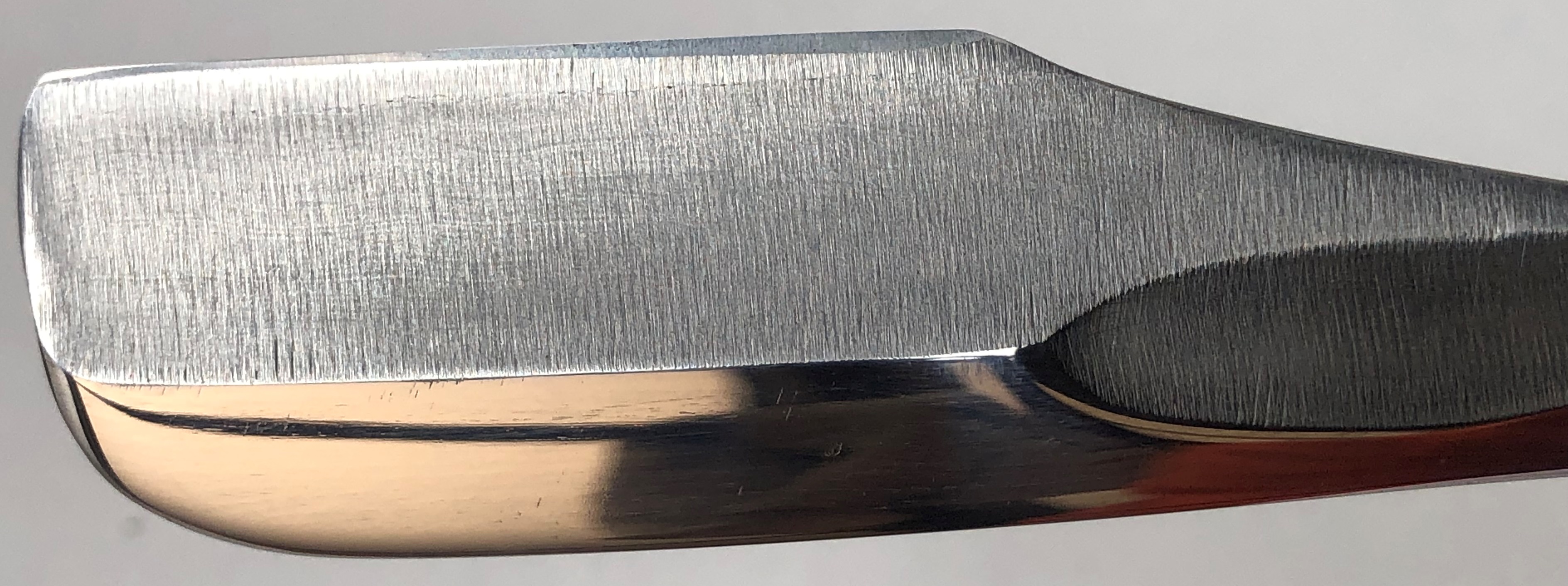 Бритва имеет высококачественную углеродистую сталь, прекрасно и прогнозируемо затачивающуюся и доводящуюся на финишных камнях. Средней твердости. Прекрасное бритьё, с неким металлическим характером сбриваемой щетины, где то напоминающее советские бритвы, но в тоже время по качеству стали и заточки на две головы выше.Бритьё чистое, мягкое, без агрессии. Конечно, такую бритву в полной мере можно рекомендовать новичку, как наиболее удобную в практичную в обучении, но до неё новичку еще нужно дорасти, а вот опытный пользователь в состоянии получить истинное удовольствие от пользования таким раритетом.