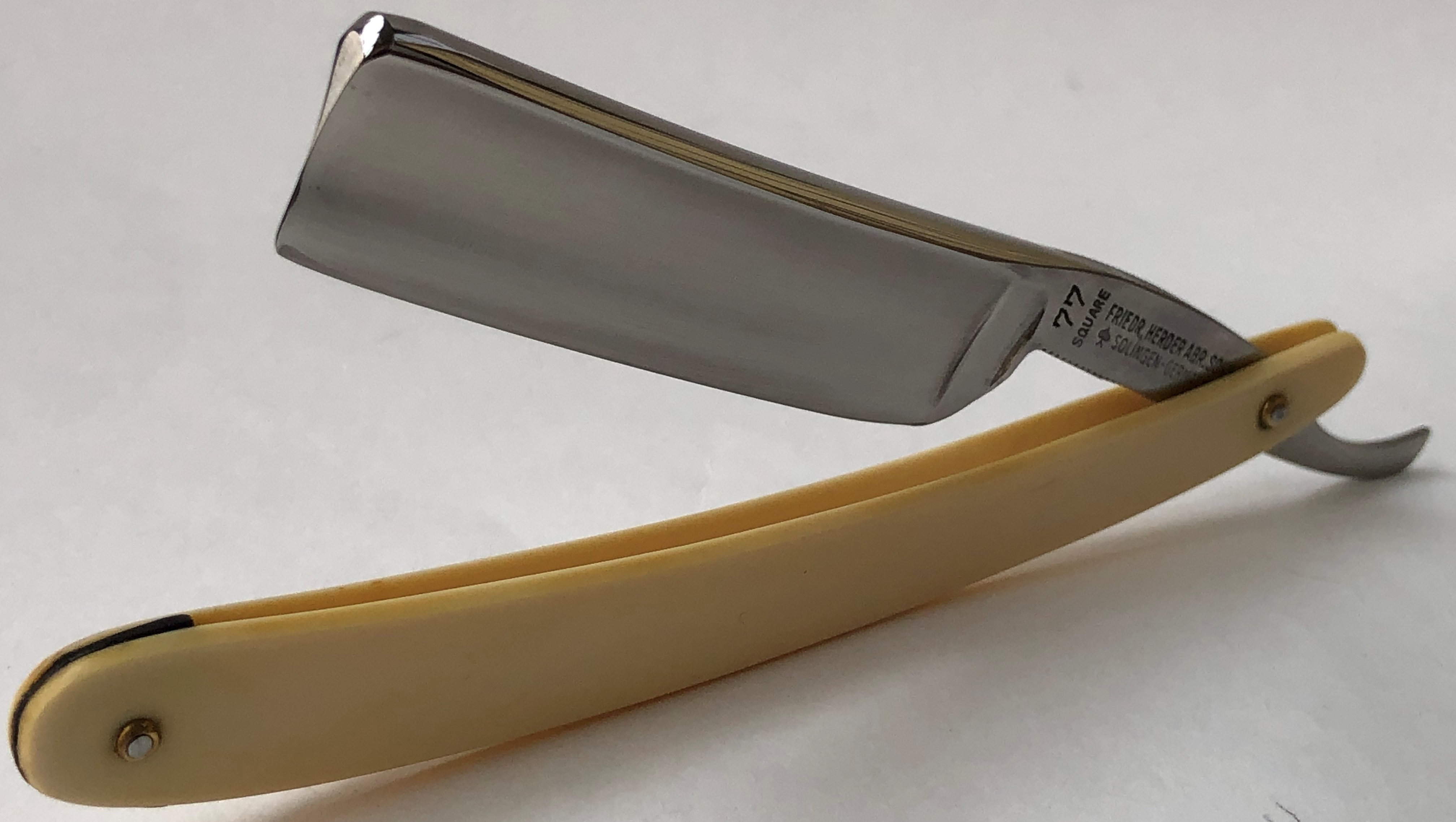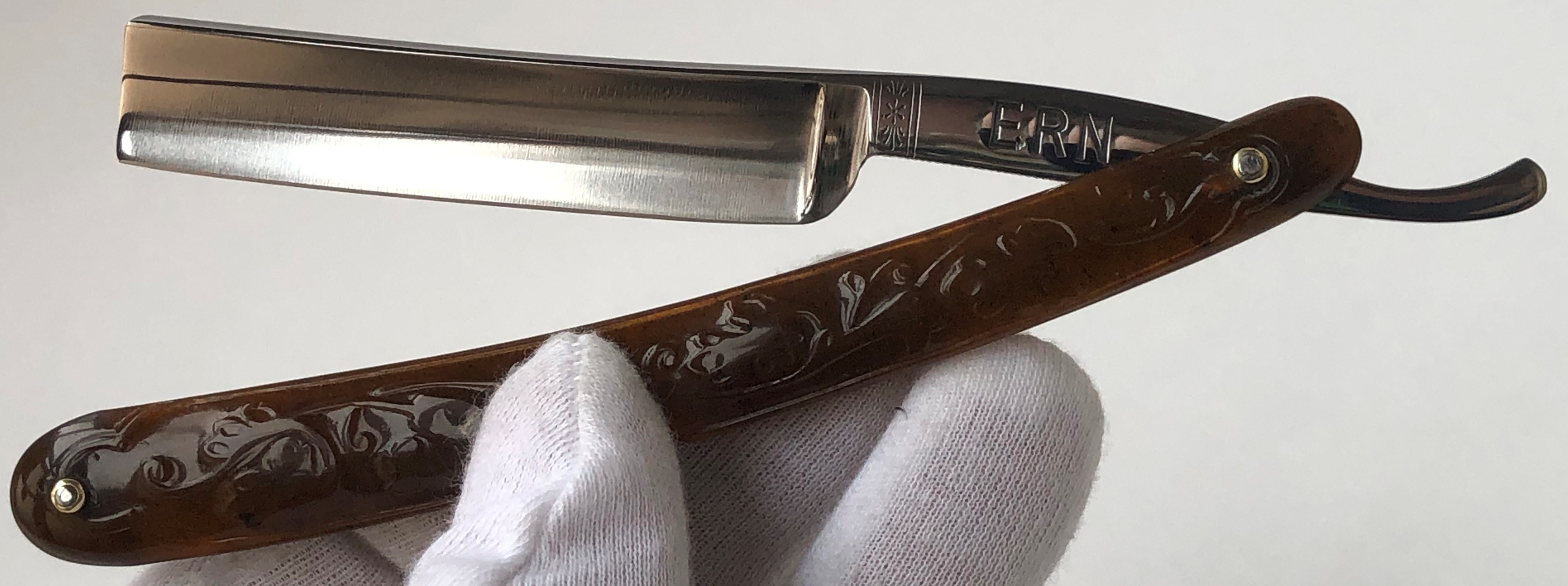 За 100+ лет бритва прекрасно сохранилась и без видимых следов пользования.Никакого регринда, а только умеренная и минимальная шлифовка и полировка.Идеальная геометрия полотна:кромочка равномерна по всей длине.Добавил внутренние шайбы, а также поставил более эффективные двух-цветные втулки. Красивая пластиковая оправа. Бритва среднего размера и опытный пользователь в состоянии оценить ее в полной мере.Ну и для новичка будет тоже неплоха,как качественная,удобная и относительно недорогая вещь.Не пропустите реально красивую,высококачественную,старинную бритву от одного из самых лучших немецких производителей прошлого.