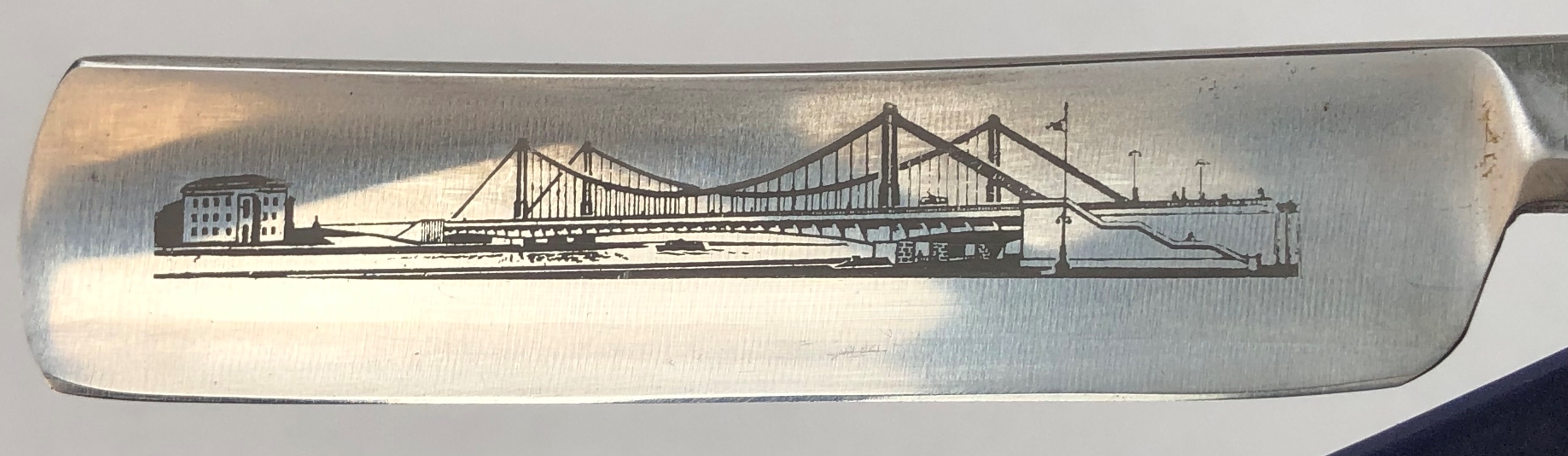 Бритва в хорошем и рабочем состоянии. Не разбиралась и не ремонтировалась.Немного отполировал клинок и все.Аккуратное пользование, хранение и заточка.Само травление чёткое, без потертостей.Кромочка равномерна по всей длине.Бритва для тех, кто не гоняется за коллекционным состоянием, а хочет иметь просто недорогой и рабочий инструмент..