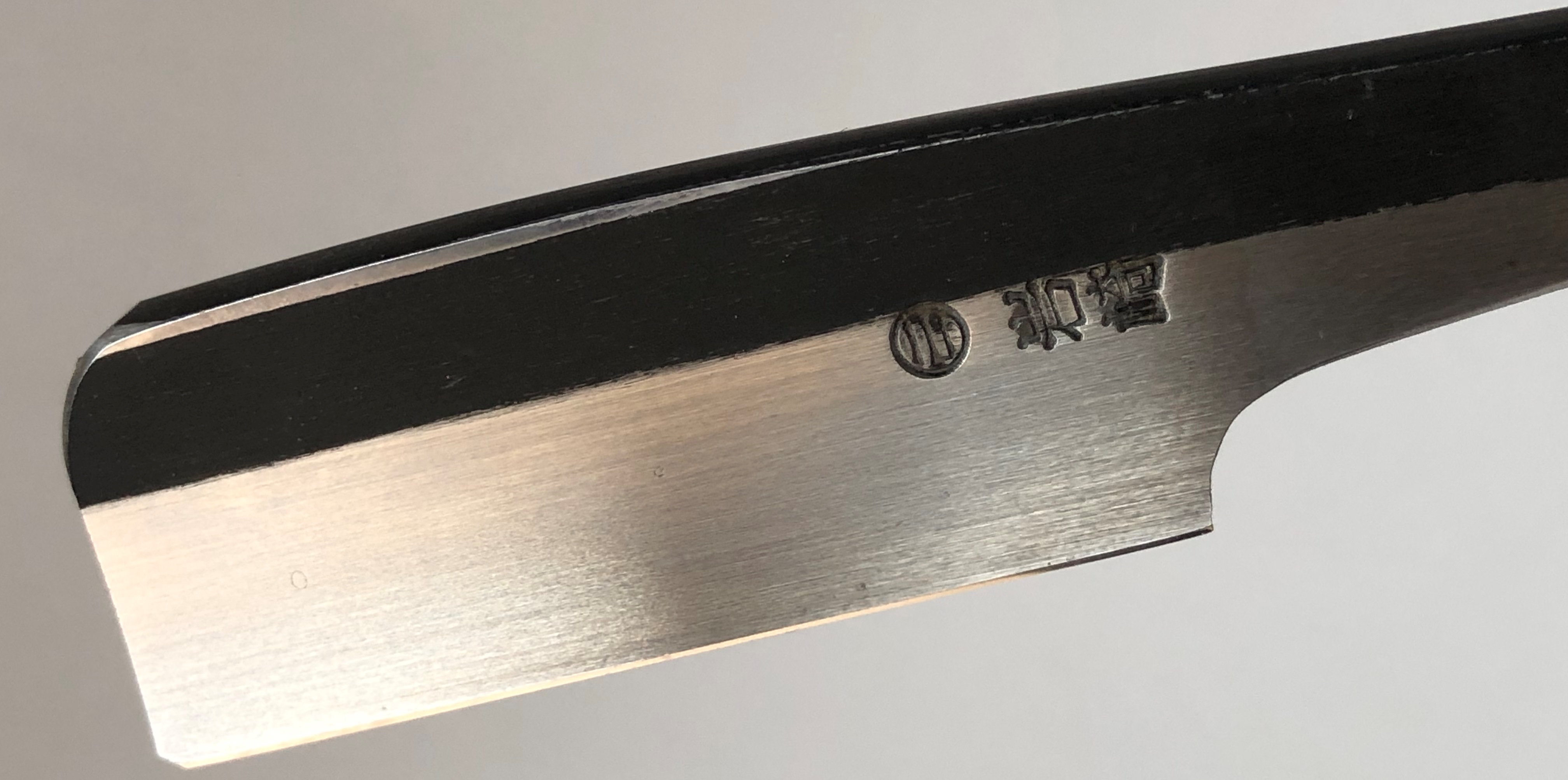 Изготовлена традиционным способом,из двух частей. Немного освежил клинок с обратной стороны. Сторона "УРА" осталась нетронутой. Минимальная полировка,не считая "зеркального" обушка.Бритва достаточно тяжёлая,потому что размер почти 7/8. Очень красивая и мощная бритва, так что не пропустите, кто хочет попробовать японскую классику в деле..