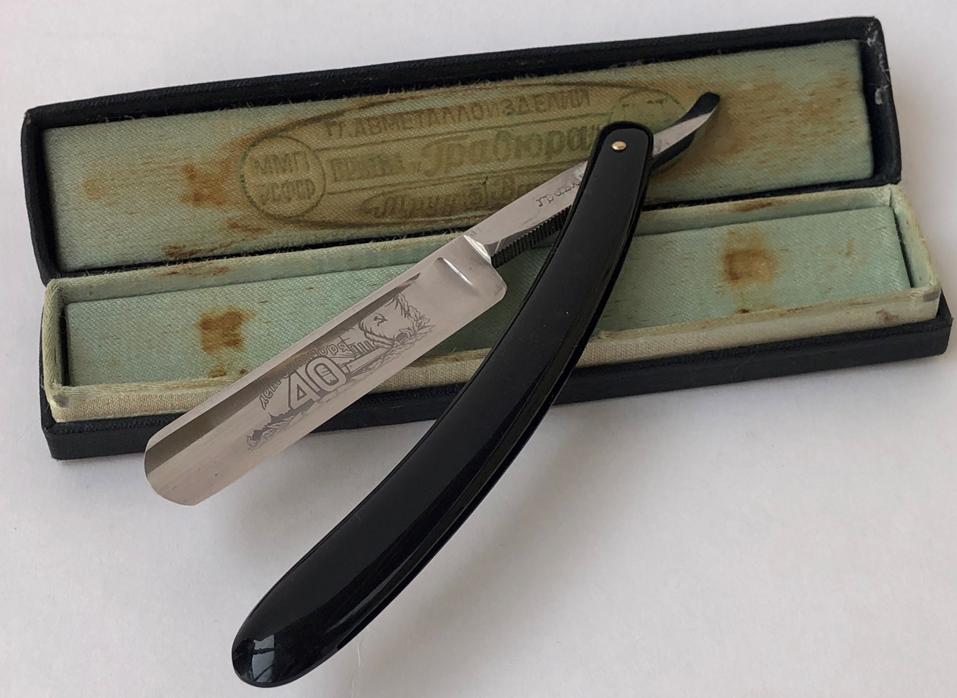 Опасная бритва "ГРАВЮРА" от Труд Вача,1957 года выпуска, с редким травлением "40 ЛЕТ ОКТЯБРЯ".