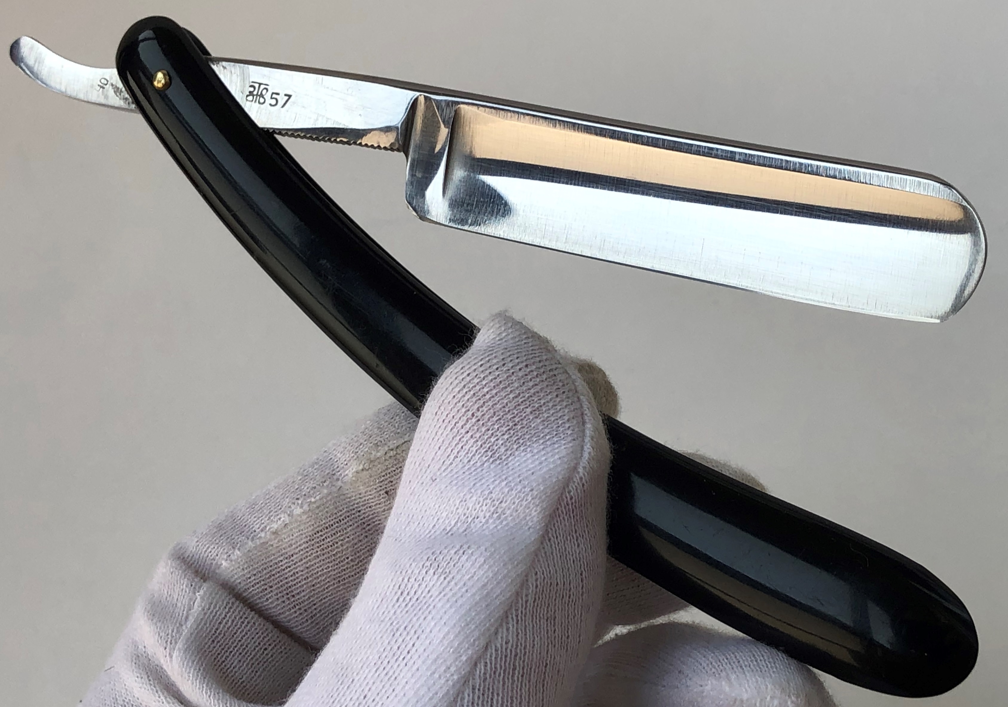 За 100+ лет бритва прекрасно сохранилась и без видимых следов пользования.Никакого регринда, а только умеренная и минимальная шлифовка и полировка.Идеальная геометрия полотна:кромочка равномерна по всей длине.Добавил внутренние шайбы, а также поставил более эффективные двух-цветные втулки. Красивая пластиковая оправа. Бритва среднего размера и опытный пользователь в состоянии оценить ее в полной мере.Ну и для новичка будет тоже неплоха,как качественная,удобная и относительно недорогая вещь.Не пропустите реально красивую,высококачественную,старинную бритву от одного из самых лучших немецких производителей прошлого.