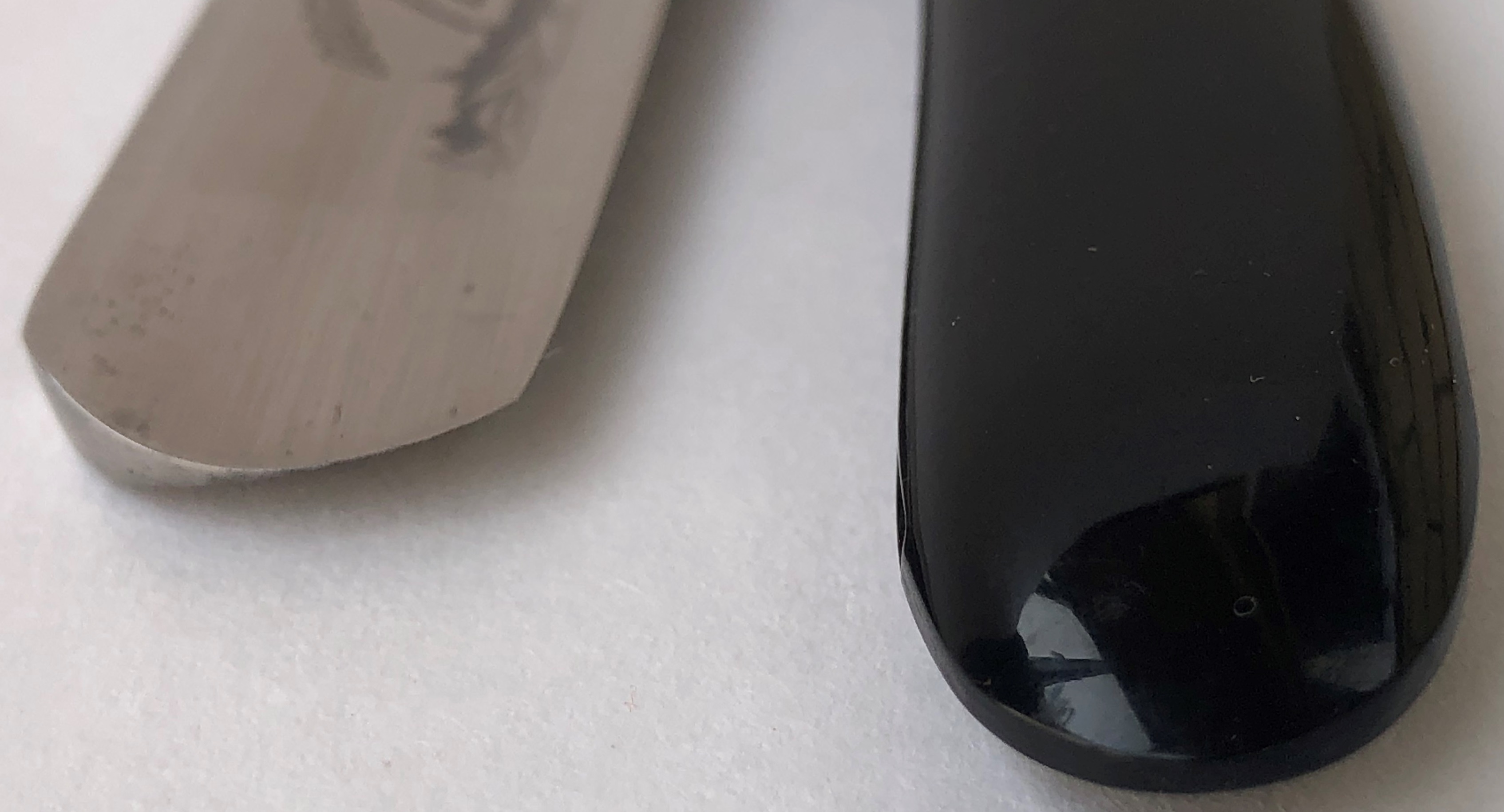 Бритва имеет высококачественную углеродистую сталь, прекрасно и прогнозируемо затачивающуюся и доводящуюся на финишных камнях. Средней твердости. Прекрасное бритьё, с неким металлическим характером сбриваемой щетины, где то напоминающее советские бритвы, но в тоже время по качеству стали и заточки на две головы выше.Бритьё чистое, мягкое, без агрессии. Конечно, такую бритву в полной мере можно рекомендовать новичку, как наиболее удобную в практичную в обучении, но до неё новичку еще нужно дорасти, а вот опытный пользователь в состоянии получить истинное удовольствие от пользования таким раритетом.