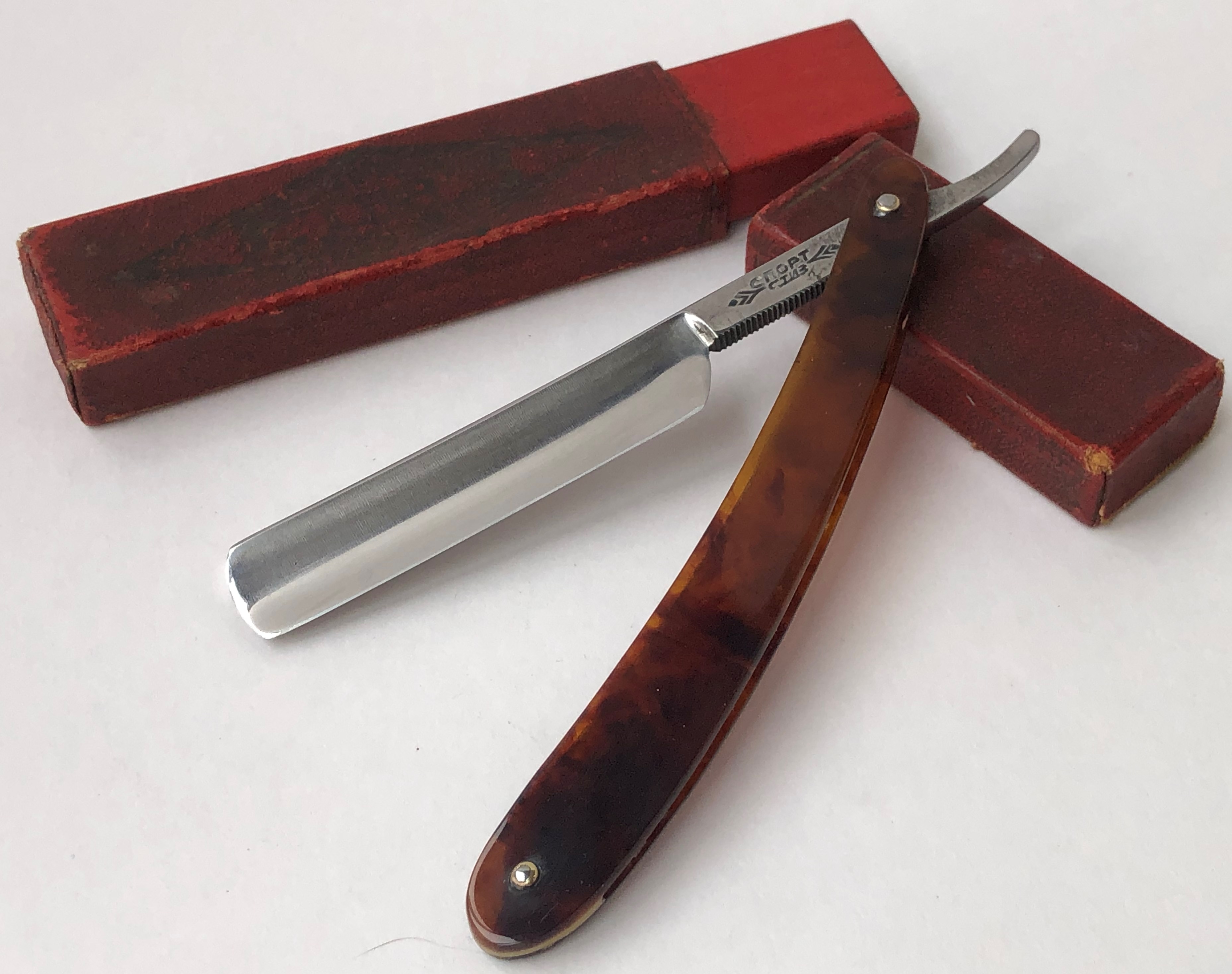 Бритва в хорошем и рабочем состоянии. Не разбиралась и не ремонтировалась.Немного отполировал клинок и все.Аккуратное пользование, хранение и заточка.Само травление чёткое, без потертостей.Кромочка равномерна по всей длине.Бритва для тех, кто не гоняется за коллекционным состоянием, а хочет иметь просто недорогой и рабочий инструмент..