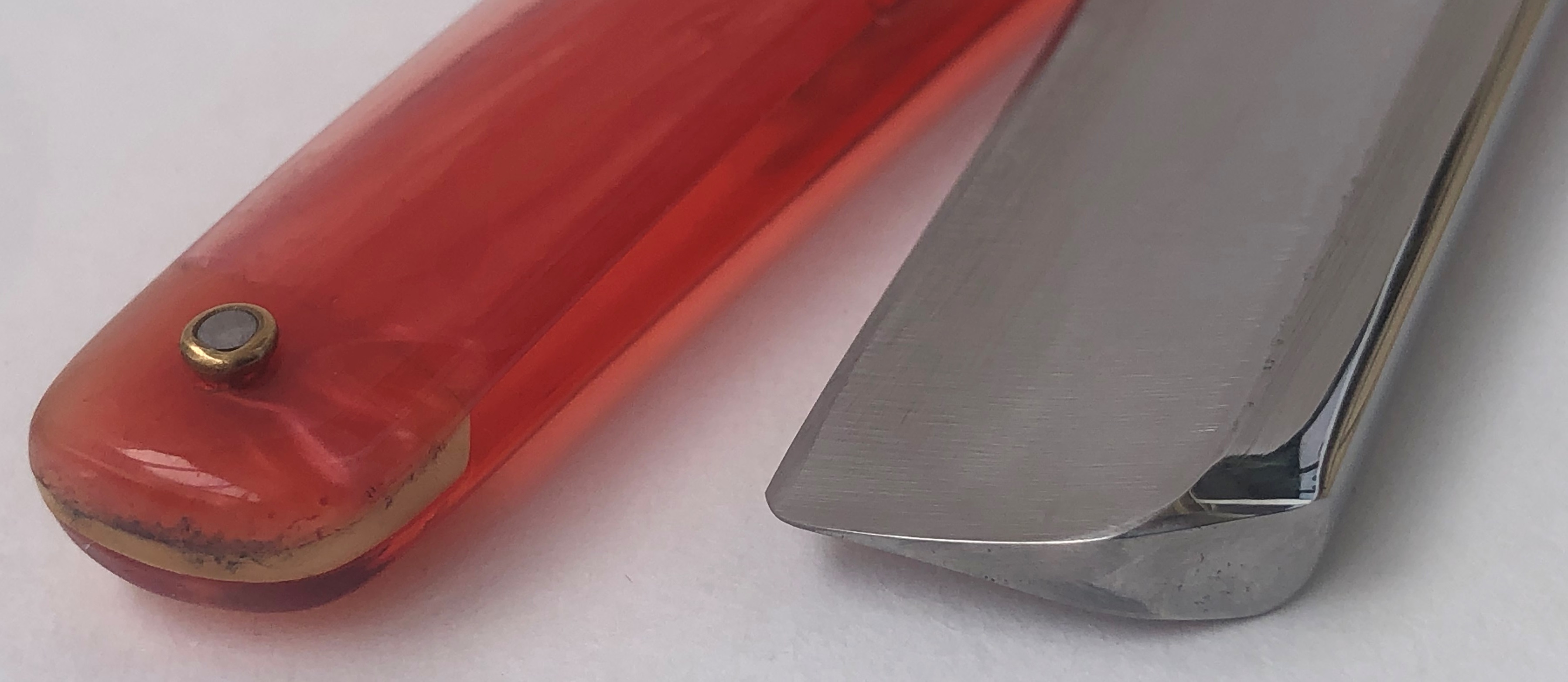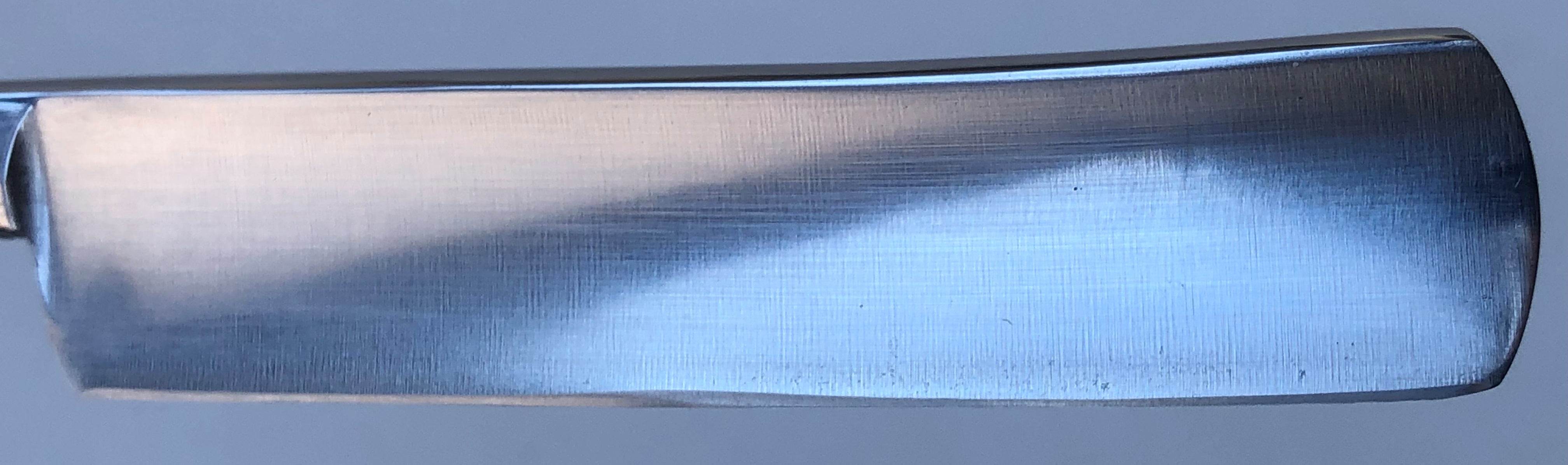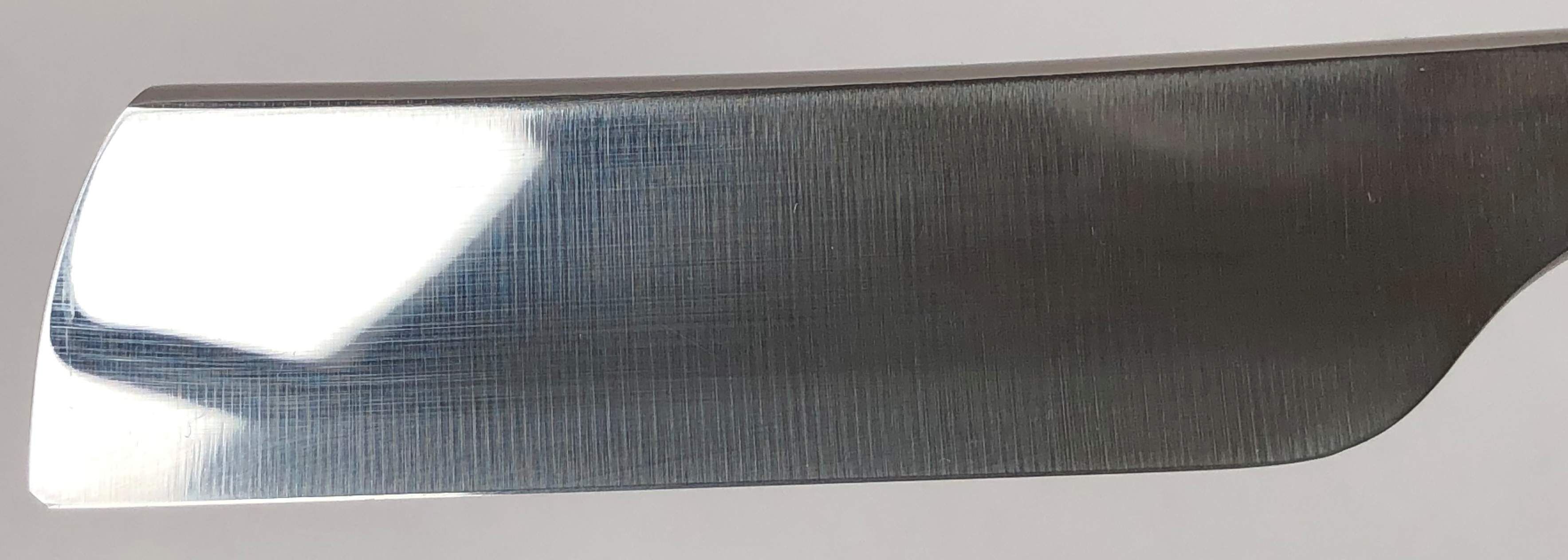 Бритва также, по всей видимости была заточена впервые мастером,поэтому с ней долго мудрить не стал,а сразу переточил с нуля, исходя из опыта заточки первой бритвы.