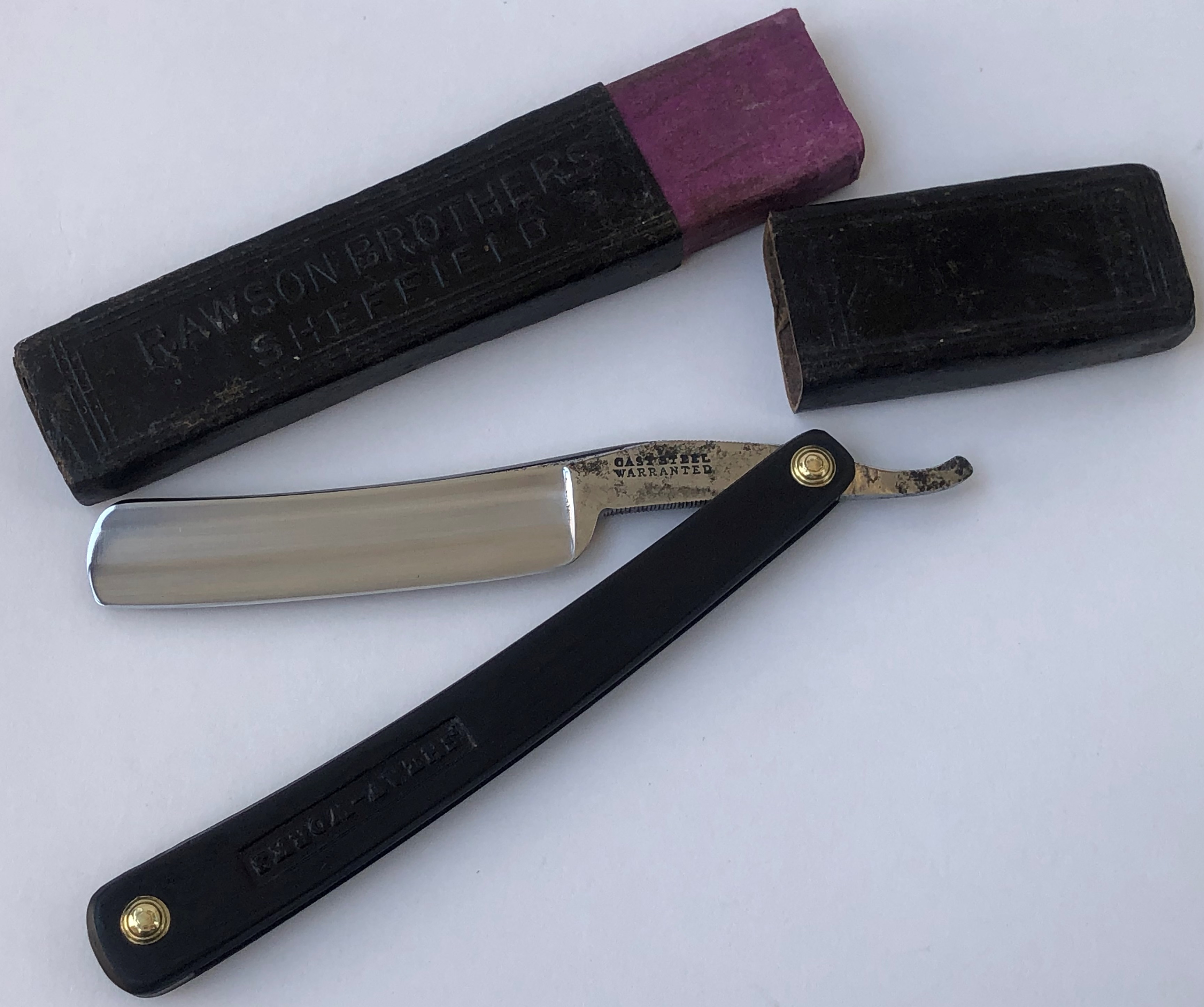 Идеальная геометрия полотна:кромочка равномерна по всей длине. Форма лезвия и сам размер бритвы удобен для новичка, а также будет неплохим вариантом в любую коллекцию, в качестве достаточно редкого и относительно недорогого варианта. Коробочка(полностью целая) неродная,хотя тоже от другой англичанки, примерно этого же временного периода.