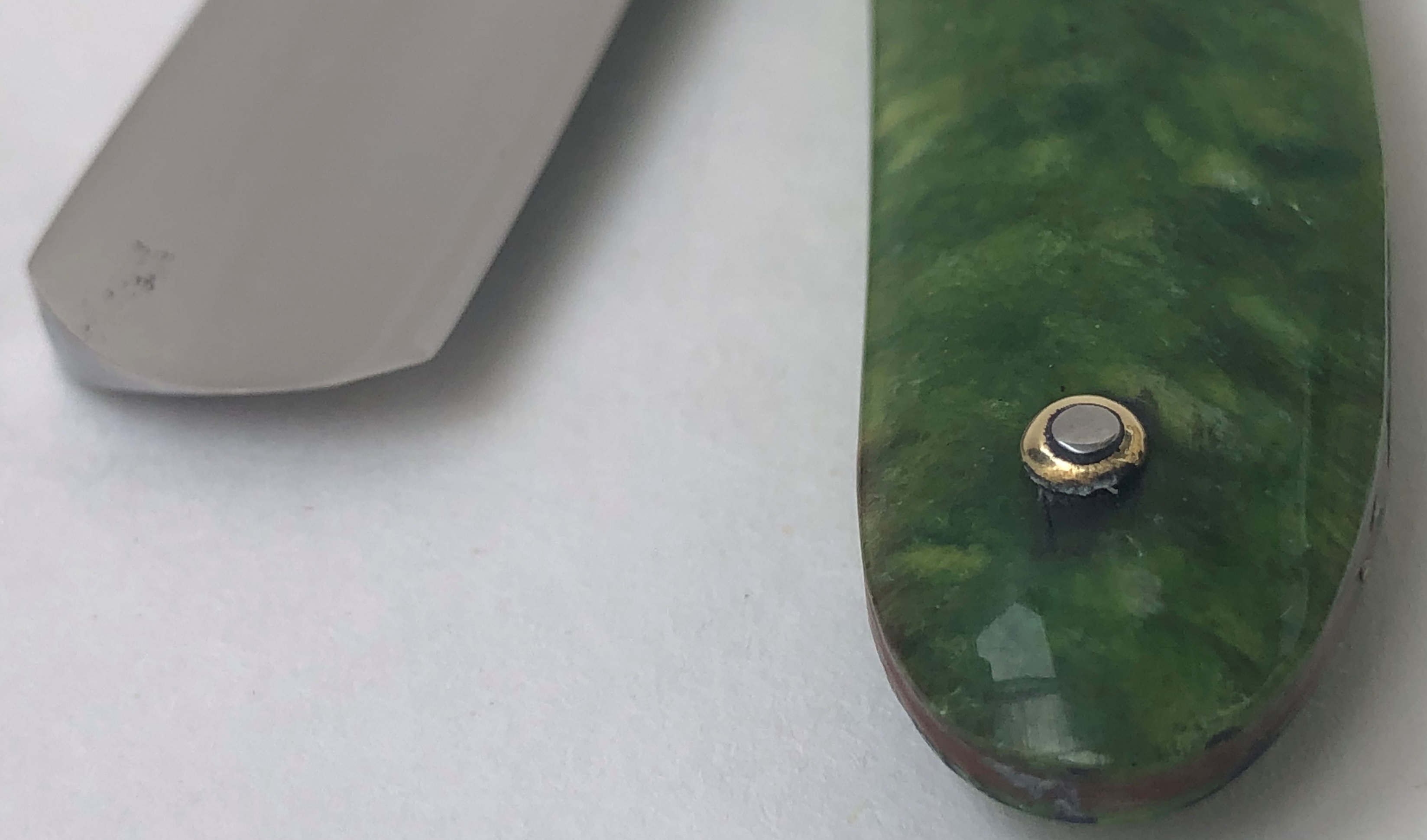 Бритва в пользовании не была, а само полотно имеет оригинальную шлифовку и полировку, включая следы от электро-химической заточки.Была разобрана, для удаления радиальных царапин, в районе осевого пина, а также с добавлением внутренних шайб, для улучшения всего осевого механизма. Идеальная геометрия клинка:кромочка равномерна по всей длине. Отличный вариант для новичка, в качестве стартовой... Заточена и готова к бритью..