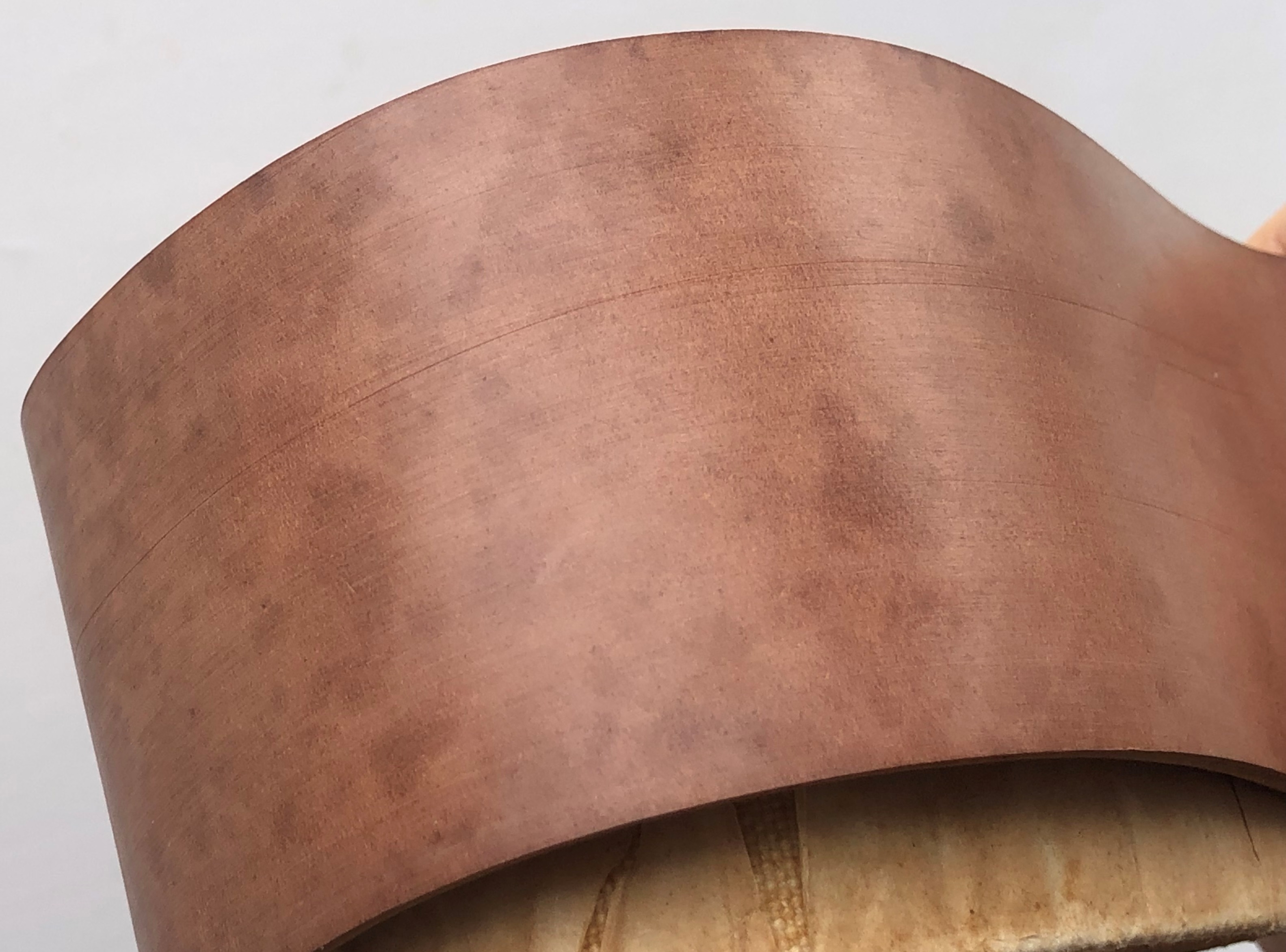 Совершенно нетронутый временем.Правильное хранение для кожи кордована.Кожа светло-коричневая,как наиболее приближённая к исходному состоянию. Без видимых дефектов, в виде трещин, царапин, порезов и рассохшихся мест.Мягкая и эластичная, как кусок резины.Неестественно широкое полотно, что неплохо тоже.Кожа достаточно тонкая, так что при работе на таком ремне нужно быть аккуратным,чтобы навсегда не "зарезать" достаточно дорогостоящую вещь.Льняная стропа умеренно мягкая и не требует дополнительной подготовке к работе. Можно рекомендовать такой ремень в качестве бюджетного(если это определение тут уместно  ), но самого высокого качества.