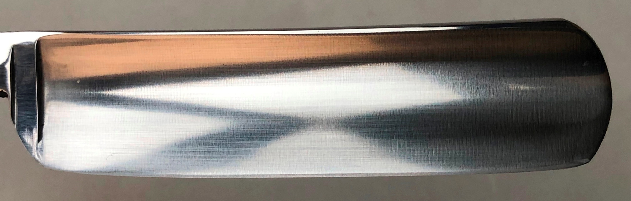 Бритва в пользовании не была, а само полотно имеет оригинальную шлифовку и полировку, включая следы от электро-химической заточки.Была разобрана, для удаления радиальных царапин, в районе осевого пина, а также с добавлением внутренних шайб, для улучшения всего осевого механизма. Идеальная геометрия клинка:кромочка равномерна по всей длине. Отличный вариант для новичка, в качестве стартовой... Заточена и готова к бритью..