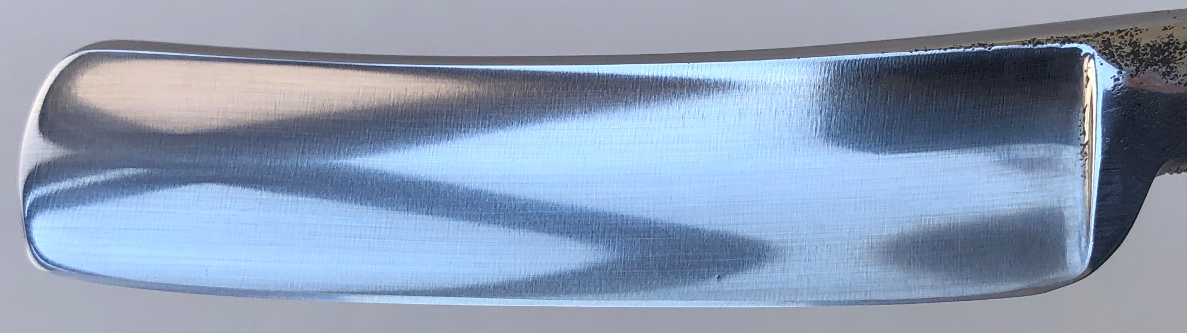 Бритва также, по всей видимости была заточена впервые мастером,поэтому с ней долго мудрить не стал,а сразу переточил с нуля, исходя из опыта заточки первой бритвы.