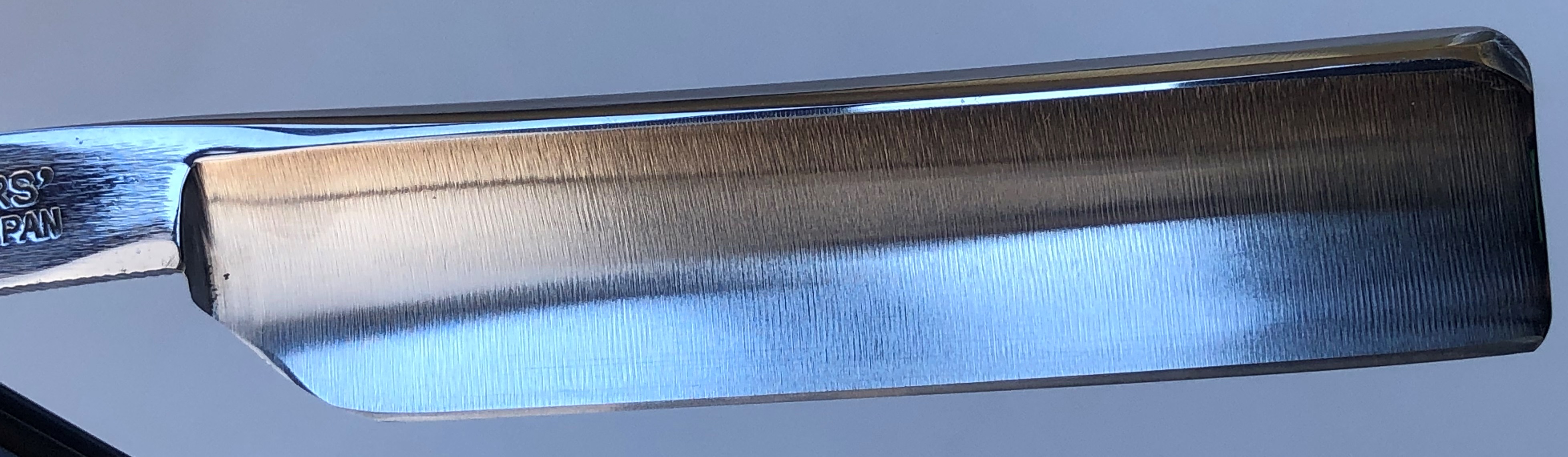 Бритва сохранилась очень хорошо и без активных следов пользования. Была разобрана для минимальных косметических работ.Умеренная шлифовка и полировка клинка. Четкая гравировка, без потертостей.Идеальная геометрия полотна:кромочка равномерна по всей длине. Удалось демонтировать и заново установить оригинальные пины,с добавлением внутренних шайб.Тяжёлая и красивая бритва,созданная в классическом японском евро-стиле. Заточена и готова к бритью.