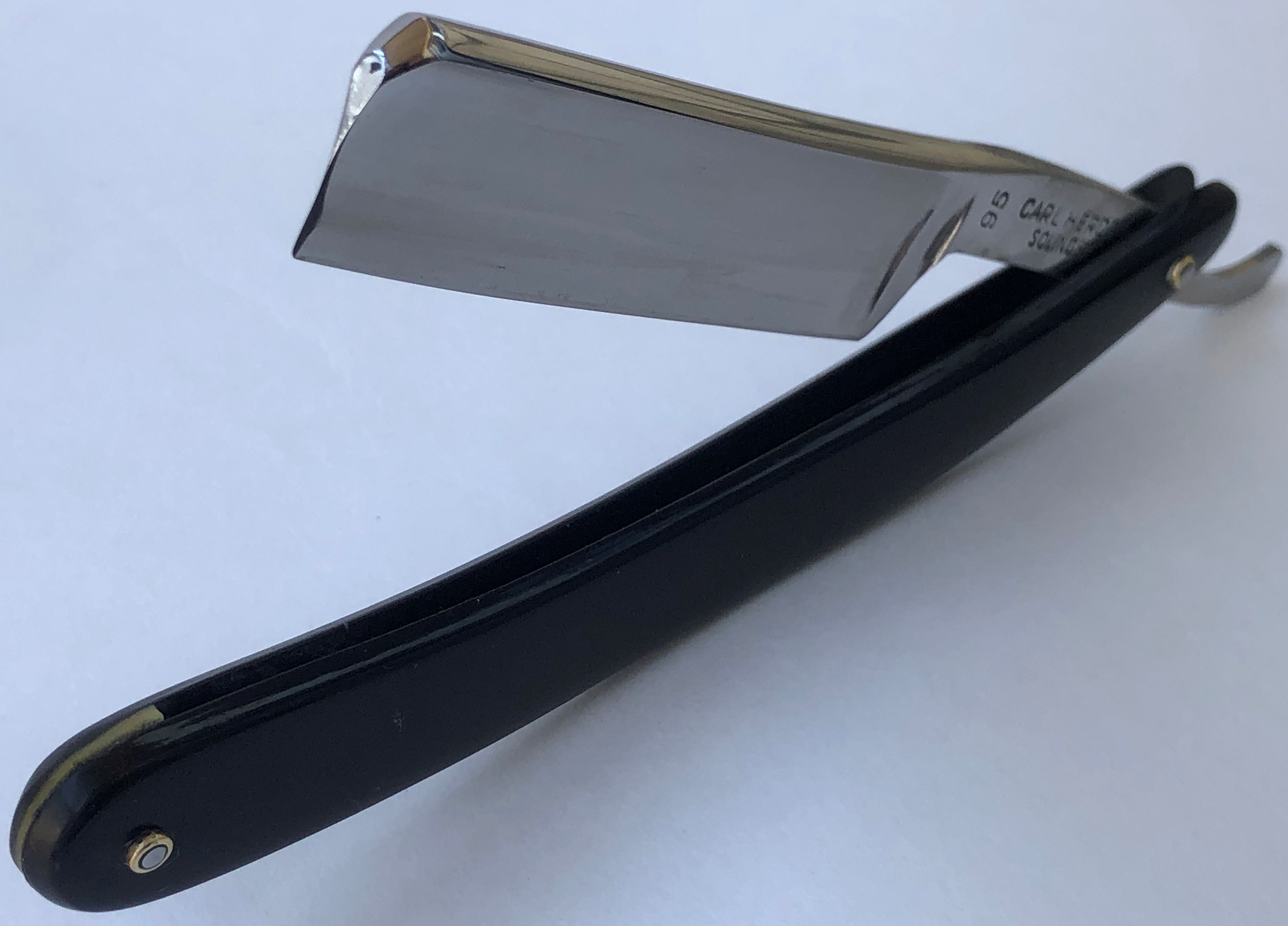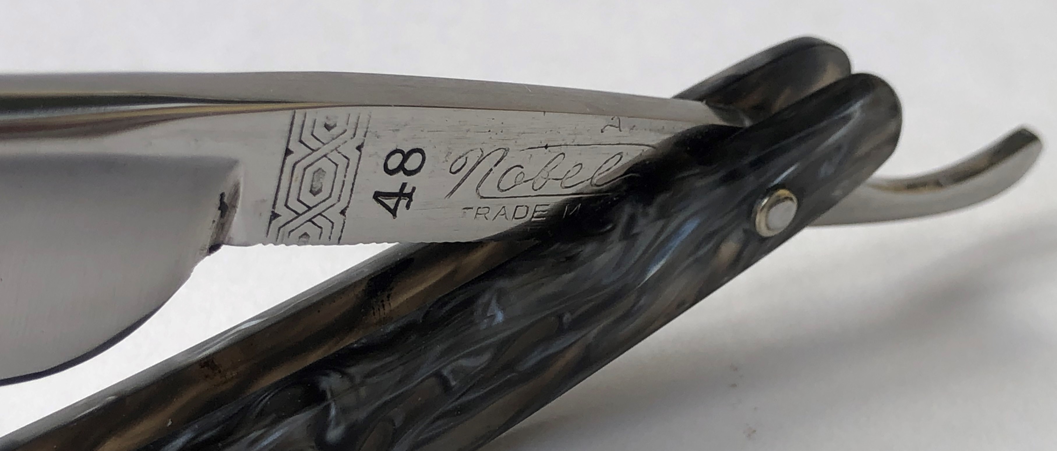 Скорее всего бритва немецкая,но установленная роговая оправа и родные пины мне напомнили классических англичан 19-го века. Поэтому на 100% точно тут сказать не могу.